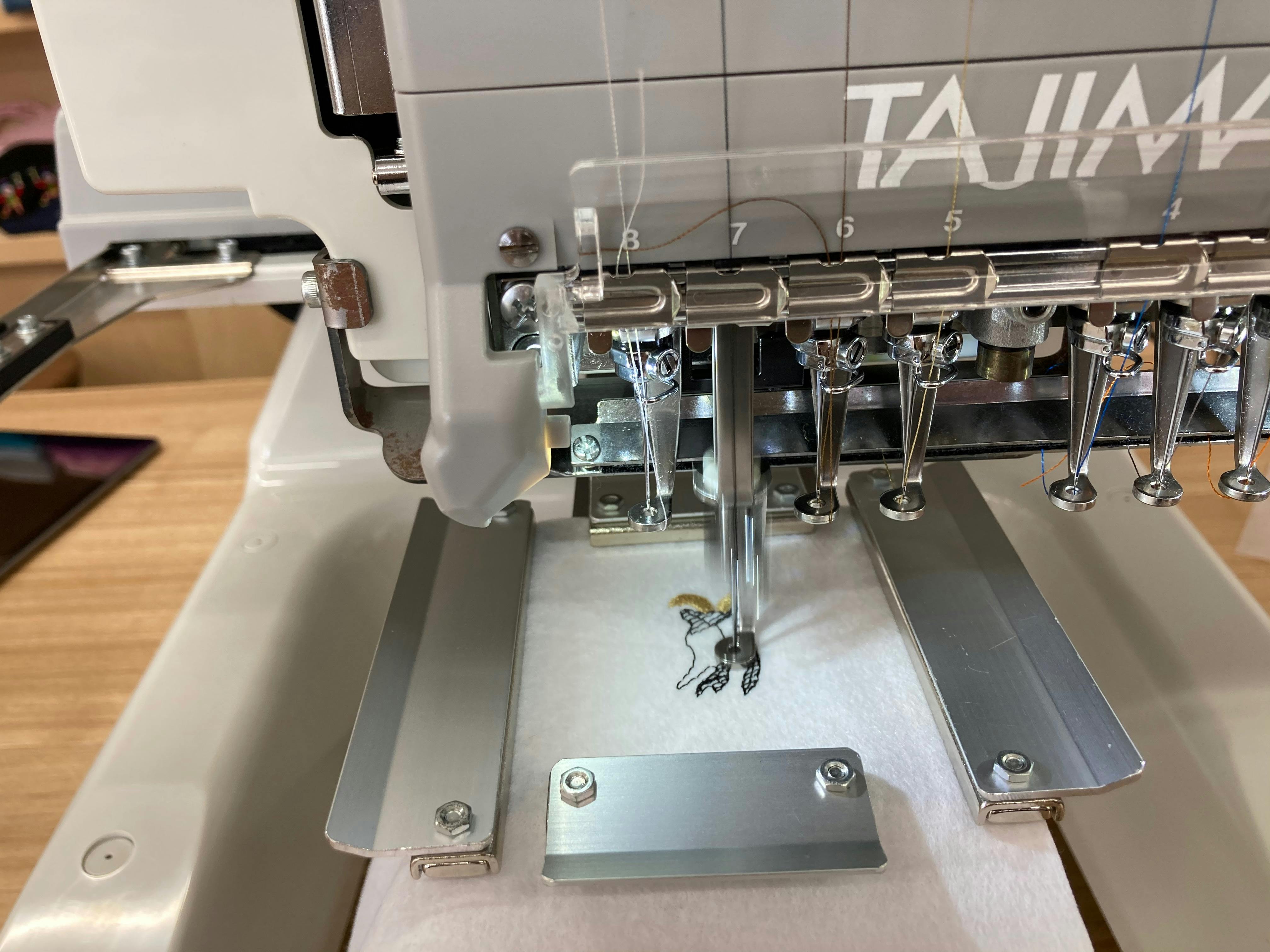 実際、刺繍機に触れてみると、デジタルとはいうものの、経験や体験によって得られる職人の勘のようなものに頼る部分もあったりで、ボタン一つの操作ではなくて、色々触ってみて機械と仲良くなって、技術も身に付くということなんだなと。。感じております。