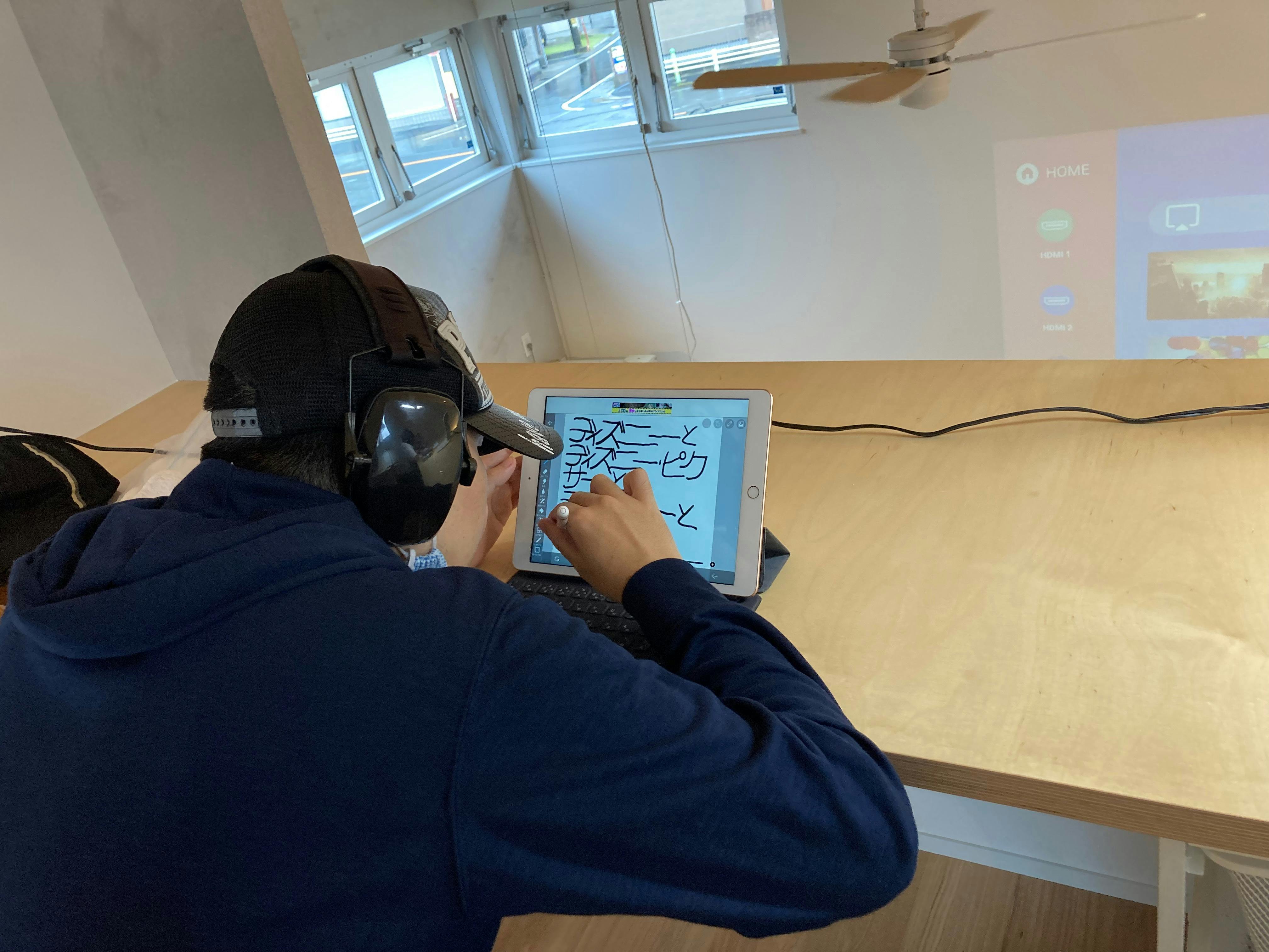 そして、到着するや否や、さっと2階に上がって、椅子に座るや否やiPadで文字を描かれて見えました。