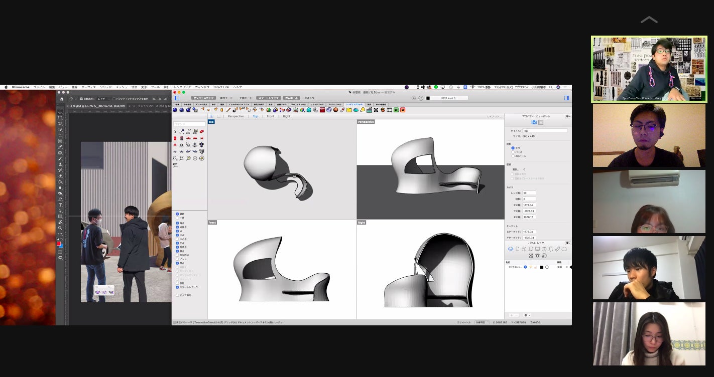しかし、そんな5軸CNCも海外に比べて日本での実践例が限りなく少なく、今回の自社休憩所再建に、プロでも使ったことが少ないその技術を学生に託していただきました。私たち学生にとって、これからのものづくりに欠かせないデジタル技術を使えること、在学中に模型やCGではなく、1/1を建てれるという喜びとチャンスを与えていただけたことは感謝でしかありません。私たち9名は、オンラインで繋がり、更なる5軸と木材表現の可能性を追究しました!