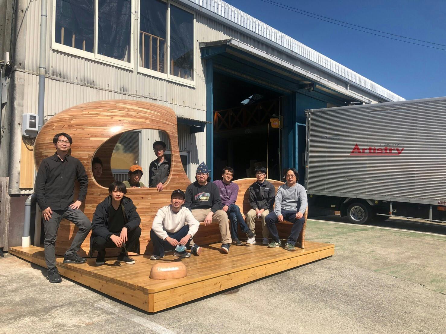 2021/03/22 12:24アーティストリーの大西です。すこし、長めの記事ですが、一読いただけたら幸いです。・・・・・・・・・・・・・・・・・・・・・・・・・・・・・・・・・・・・・3月20日に設計した学生メンバーが、弊社に集まりました。zoomでは、いつも顔を合わせていたメンバーですが、実際に会うのは初めて。照れくさい感じもしつつ、より絆を深めていました。そして、自分たちが設計した休憩所と初対面です。(今回のメンバー集合にあたり、皆様からご支援いただきました資金の一部を彼らの交通費にあてさせていただきました。)座り心地、居心地の良さを感じるメンバー見る角度によって異なる表情の休憩所CG上ではいつも見ていた休憩所。実物を前に「すごーーい」を連発(笑)学生生活の作品作りで、1/1の実物を作ることは、ほとんどない彼らは、自分たちの考えたものがこうやって形になることの喜びを噛み締めていました。CGと同じアングルで再現写真も撮りました。みなさま、再現具合はいかがでしょうか?・・・・・・・・・・・・・・・・・・・・・・・・・・・・・・・・・・・・・以下、学生メンバーのNARAプロジェクトをやりとげてのコメント・今回のプロジェクトで、アイデアだけで終わらせず、実現させる重要性を学びました。当初、自分の周りにこのプロジェクトの話をしていても反応は薄かったです。でも、作り始めるにつれ、「本当にやるんだ!」と評価が変わっていくのを感じました。有言実行って本当に大切ですね。・できない言い訳、やらない理由は沢山あって、それを選ぶことは容易いけど、実行するために、NARAプロジェクトを通じて、何をしなければいけないか?どうしたらできるのか?前を向くことの大切さ、実はできるんだ!という事実を改めて学ばせていただきました。社会人になってもこの気持ちを忘れないようにして、頑張ります!・プロジェクトを通じて、先輩メンバーの皆さんからたくさん勉強させていただきましたが、自分自身はまだまだ不完全燃焼で、その想いを持って、今後の学生生活でいい作品作りができるように頑張っていきたいと思います。・アイデアを形にするには、リアルなお金の話がついてきて、それは分かっているつもりだったけど、直面したことで、その難しさを知ることができました。学生のうちにこれを経験できたのは大きかったです。・プロジェクトが進むにつれて、みんなが目にしやすいメディア媒体での拡散が進むにつれて、自分の同級生だけでなく、何年も連絡とってなかった友人たちから応援をいただき、自分のやっていることで、周囲から応援をもらうことの喜びを知ることができました。保護者感がでている一枚・・・・・・・・・・・・・・・・・・・・・・・・・・・・・・・・・・・・・NARAプロジェクトに参加したアーティストリー社員・達成感と作ることの喜びを貰いました。プロジェクト中は果てしなく、終わりが見えないと思えたが、達成することができ、頑張ればなんにでも終わりがあると改めて学びました。今回、学生の皆さんとこうやって出会えて、喜んでくれる瞬間を目の当たりにして、普段仕事では忘れがちな、でも大切な「相手のために作る喜び」を再確認でき、とても嬉しかったです。・みんなと設計したものが、会社内でどんどん出来上がっていくにつれて、充実感と、それを作っている職人の先輩たちに深く感謝していました。仕事という枠を飛び越えて、このプロジェクトで感じた「豊かさ」を胸に、今後もアーティストリーから同じような豊かさを社会に伝えれるように頑張っていきます。企画者 大西よりプロジェクトで気づかせてもらった事・モノづくりって、本当に他拠点でもできるんだ。会ったこともない、性格も能力も分からないメンバー同士でも、しっかり主体性を持ち、コミュニケーションを取り、想いを共有することで、こんな素晴らしい結果を生み出せるんだ!・年齢や肩書って本当に関係ない。正直な話、半分、設計するのは「学生」という頭が僕の中で最初はありました。しかし、すぐにその固定概念は覆されました。社会で通用するスキルを既に身に付けている子、まだないけどそれを補う熱量がある子。勝手にレッテルを貼るのはいつも大人、先輩側もかもしれない。でも、後輩たちの「価値」を見出して上げれるのは先輩たちです。改めて、その重要性を教えてくれました。このメンバーは学生生活が続く人、社会人になる人、それぞれの道を歩んでいきますが、彼らの成長の1ページに僕たちが関われたことを誇りに思います。僕自身も青春の時間をいただきました。5年先も10年先もこのメンバーは繋がり続けます。もしかしたら社会に出てお互い仕事をするかもしれない。一旦、NARAプロジェクトはゴールを迎えますが、今後もどこかで、このメンバーが皆様に豊かさをお届けすると思います。引き続きご期待ください。最後までお読みいただきありがとうございました!