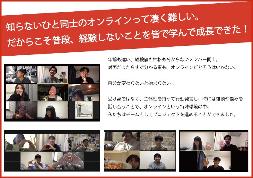 コロナでなければ出会わなかったかもしれない、見ず知らずの、学年も、住む場所も異なる私たちが、1つの企業と「zoomでものづくり」を行うプロジェクト。
