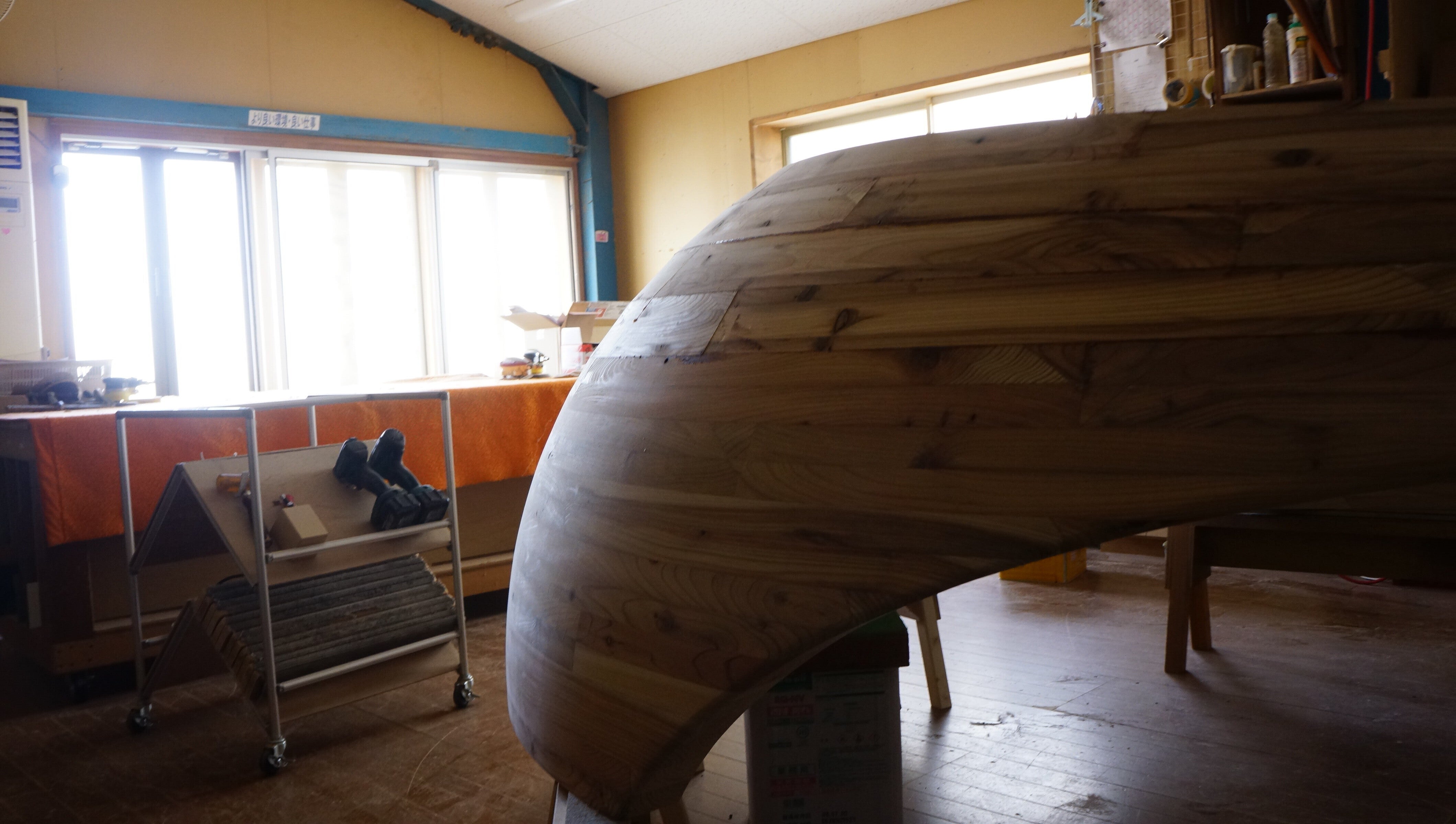 おはようございます。アーティストリー大西です。窓部分が終わり、現在は屋根に差し掛かっています。覆いかぶさるようなドームの屋根は、ちょっとずつ、部品に角度をつけて丸くしていきます。真っすぐに積まれていたものが傾斜がついています今までは有機的な局面でしたが、ここは大分、真ん丸に仕上がってきています。完成したら、子供たちが、スベスベの木の壁を触ってくれるんだろうなーとイメージしながら、職人の皆さんは作っています。残りパーツ数も40ほどになりました。今週中には5軸CNCの加工が全て終わる予定です。引き続きご期待ください!