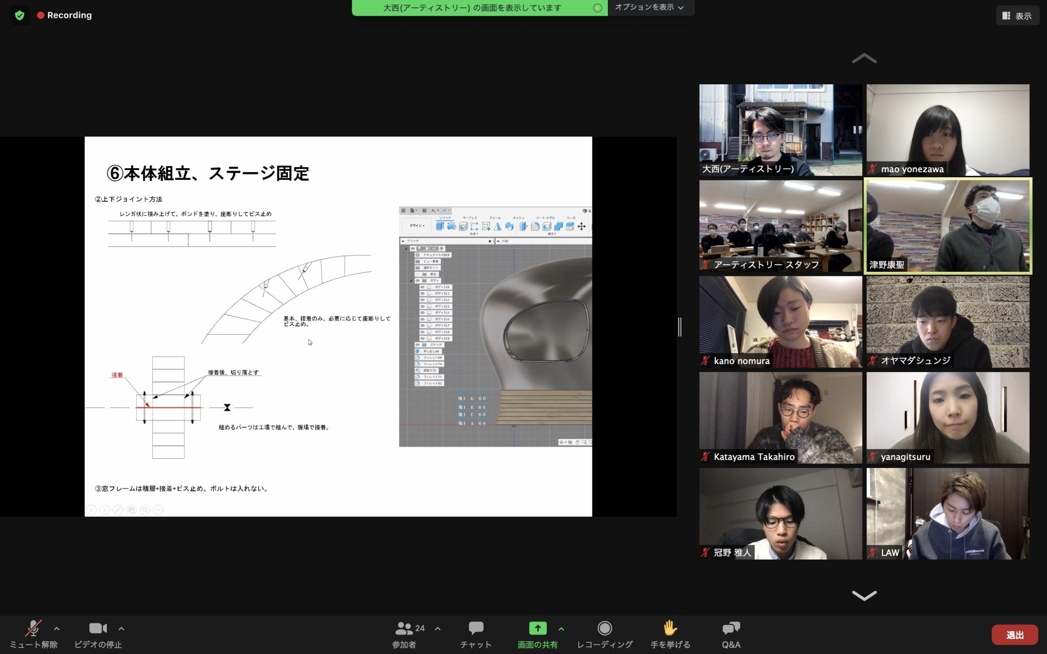 今回の投稿は、作り手のアーティストリーから、設計してくれた学生メンバーへのzoom製作説明会の様子です。