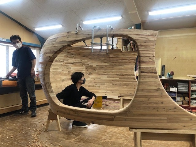 いよいよ、この休憩所のアイコンともいえる窓部分ができてきました!