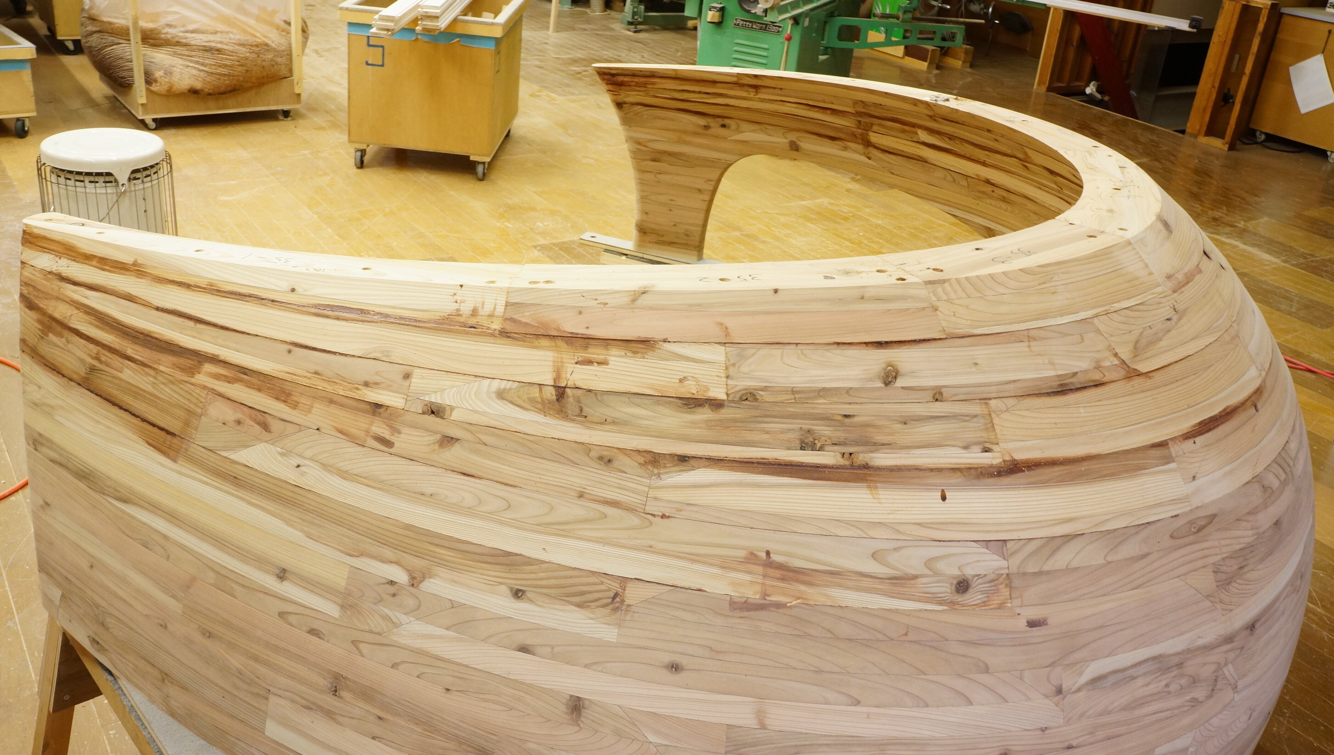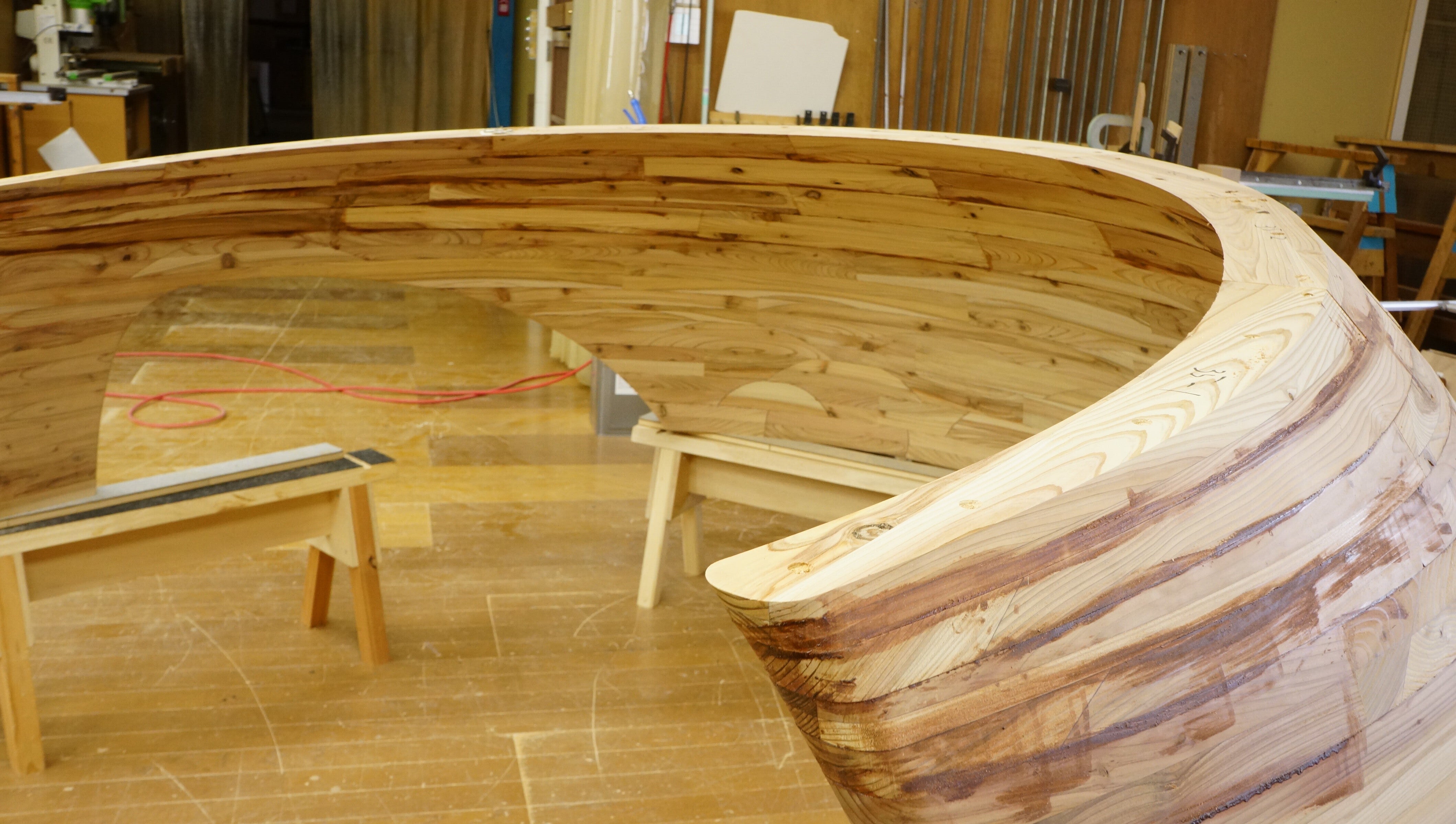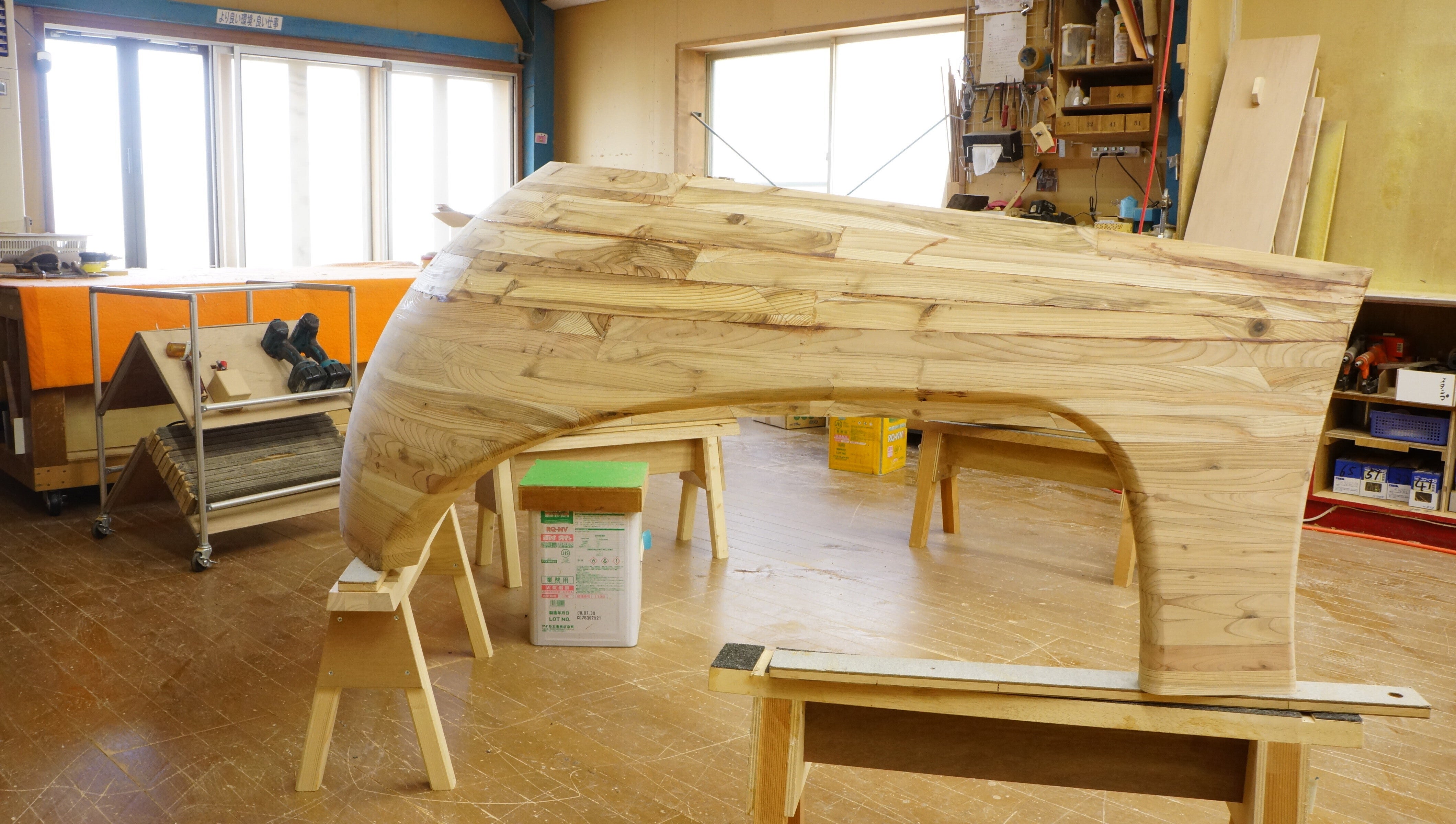 完成したら、子供たちが、スベスベの木の壁を触ってくれるんだろうなーとイメージしながら、職人の皆さんは作っています。
