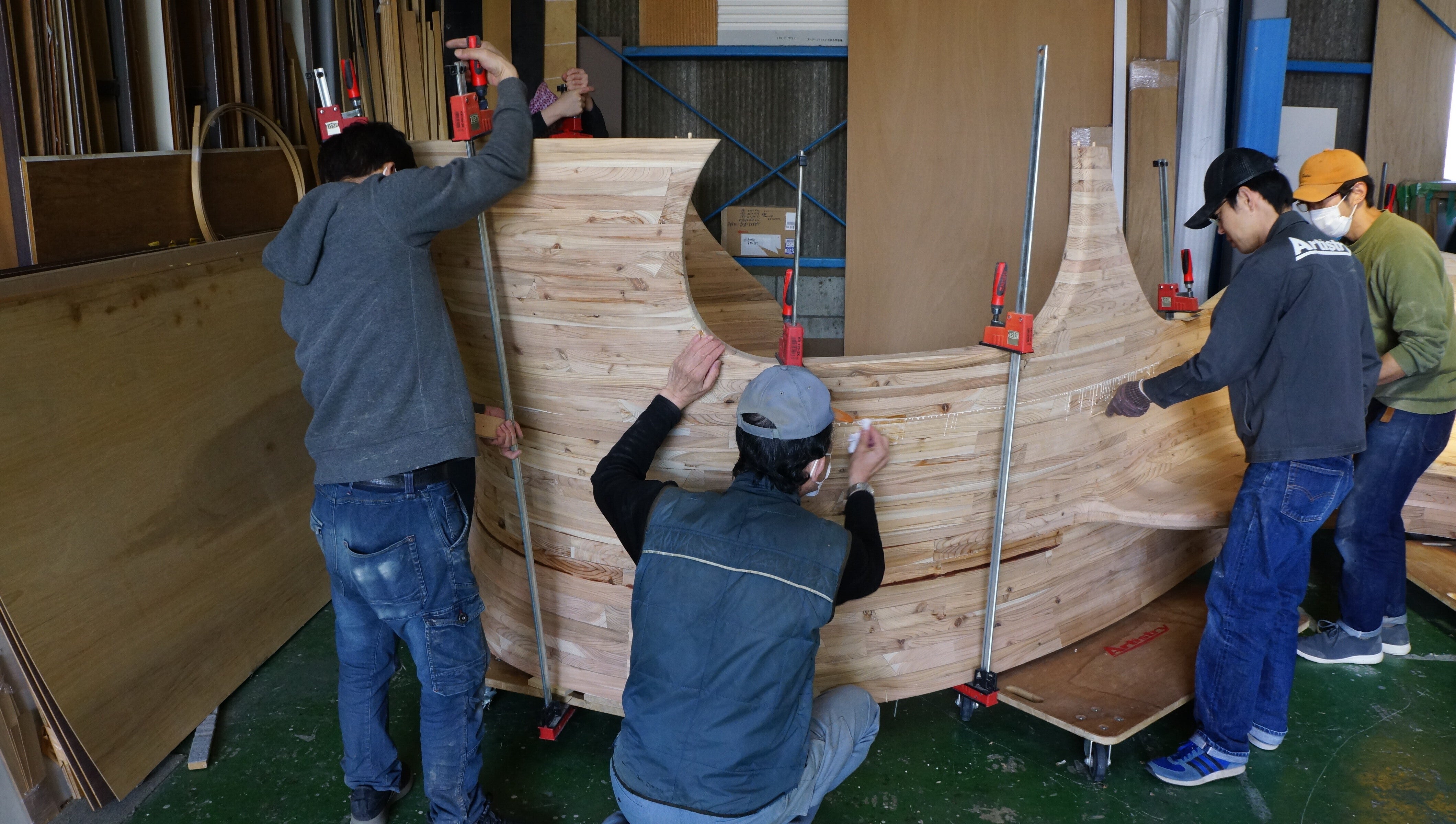 これには会社中の職人さんたちが集まり、まるでお祭りのように楽しく、でもスピーディーに連携をとりながら積み重ねていきました。