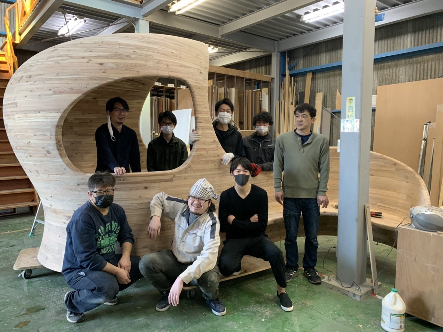 完成後はみんなで記念撮影!でも、恥ずかしがり屋の職人さん数名は映っていません(笑)