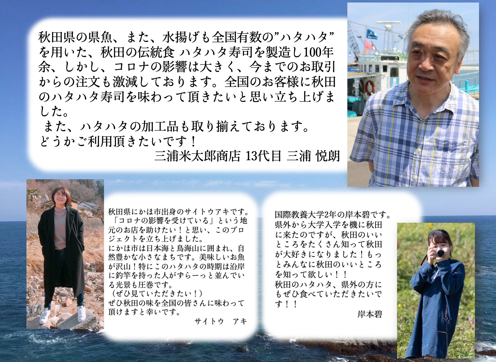 秋田自慢のハタハタ商品をぜひ全国の皆さんに味わっていただきたいです。