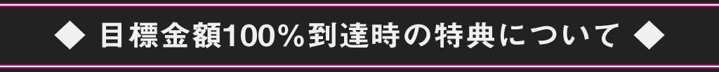 本プロジェクトは「All-In」のプロジェクトになります。リターンの完成時期は現時点では未定ですが、目標金額への達成に関わらず制作を前提としたものになります。ただし、目標金額に到達したときには以下の特典が付与されます。