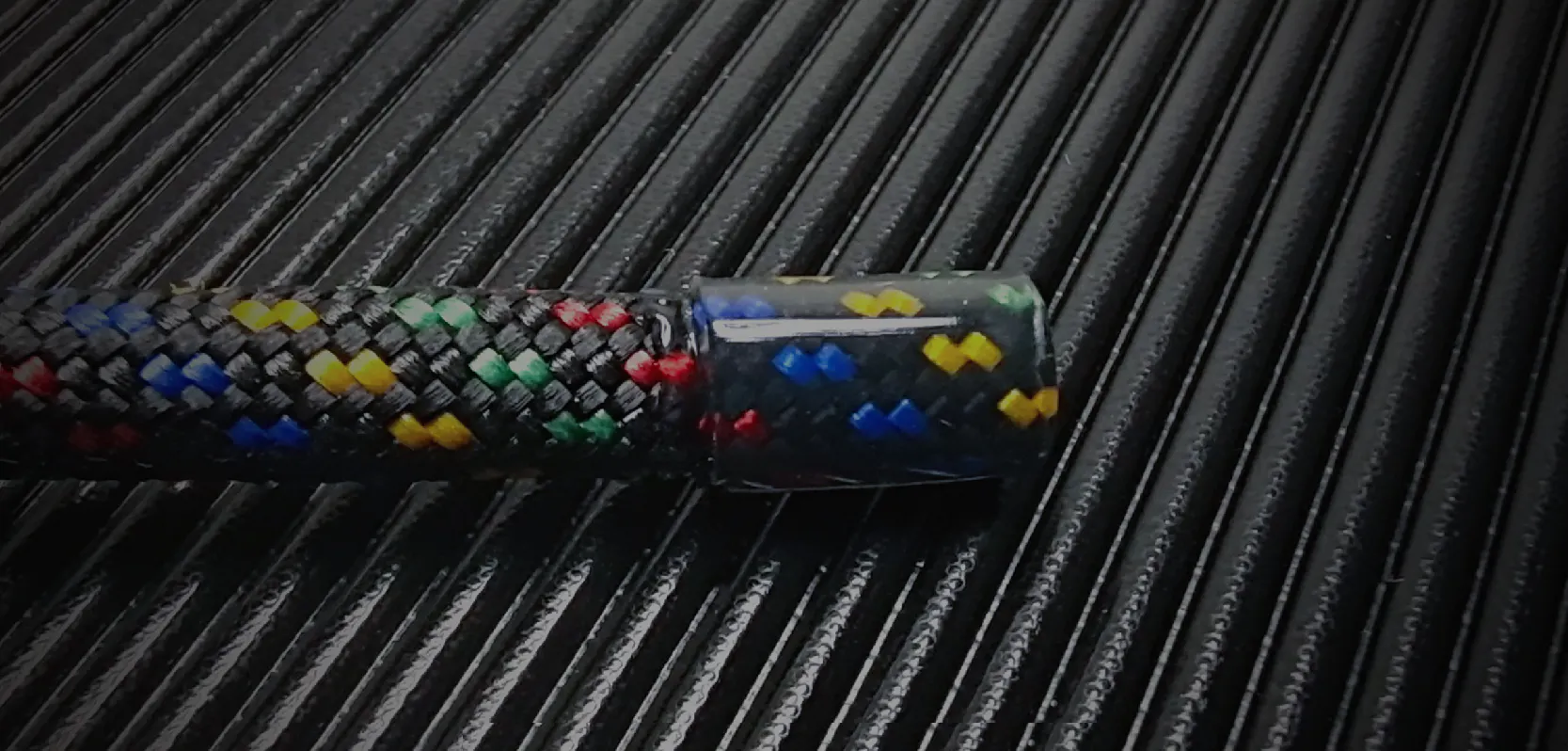 熱収縮チューブの加工で、ロープの切断を防ぎます。