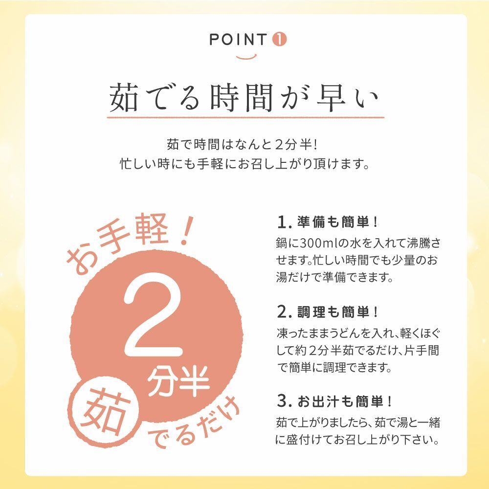 ・朝の忙しい時間でも調理が楽でとても助かっています。また、朝から温かいうどんが食べられるので、腸や体全体が活発になる気がします。
