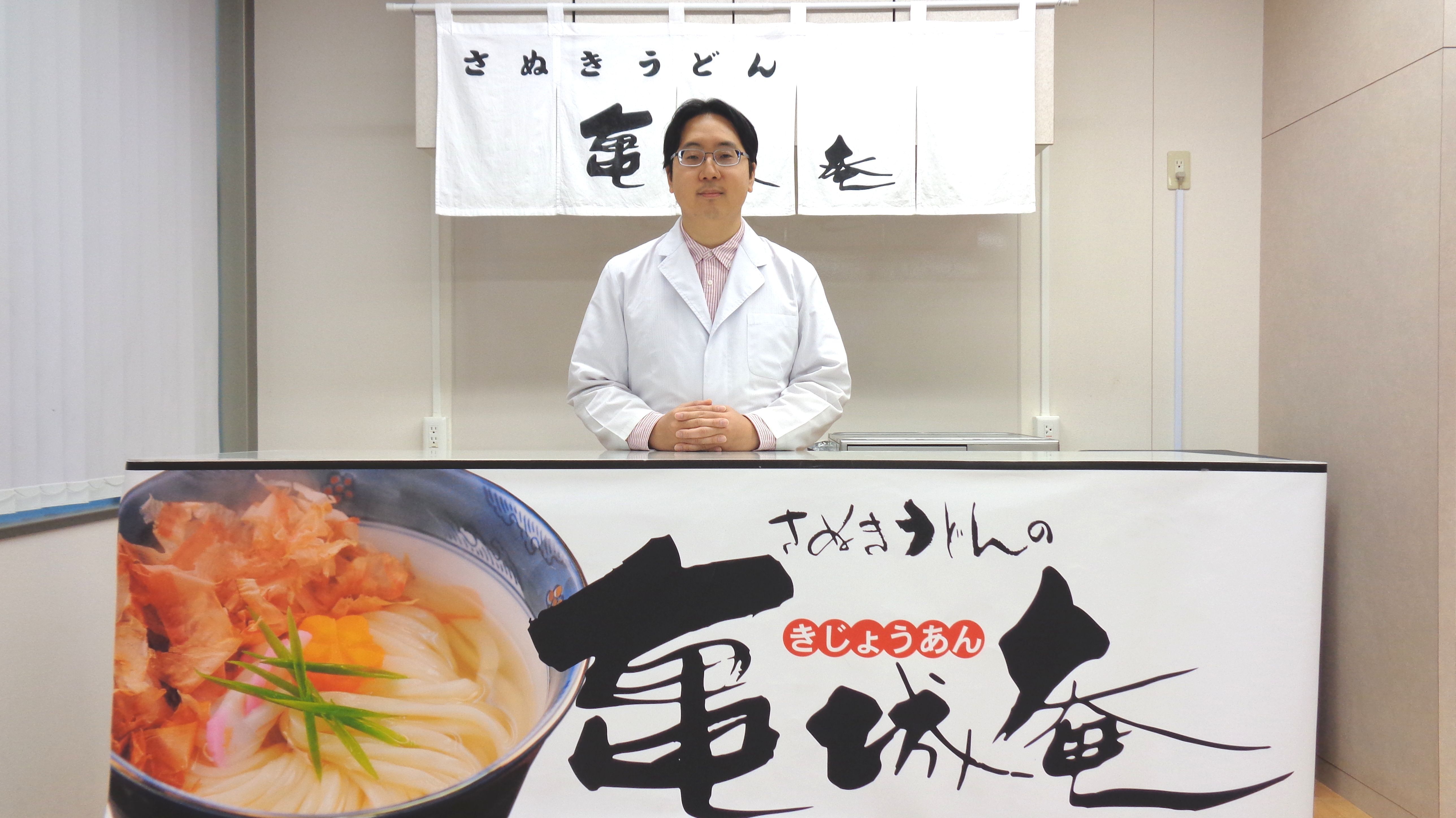 当社では、「亀城庵(きじょうあん)」というブランドで「うどん」「ラーメン」「蕎麦」のような麺類を製造し全国に販売を行っています。美味しい商品の製造だけでなく、その先にあるお客様の美味しい笑顔と幸せを目指しており、「当社の商品・サービスを通じて世界の人々が、豊かさを感じ美味しい笑顔に包まれている」 これを使命としています。