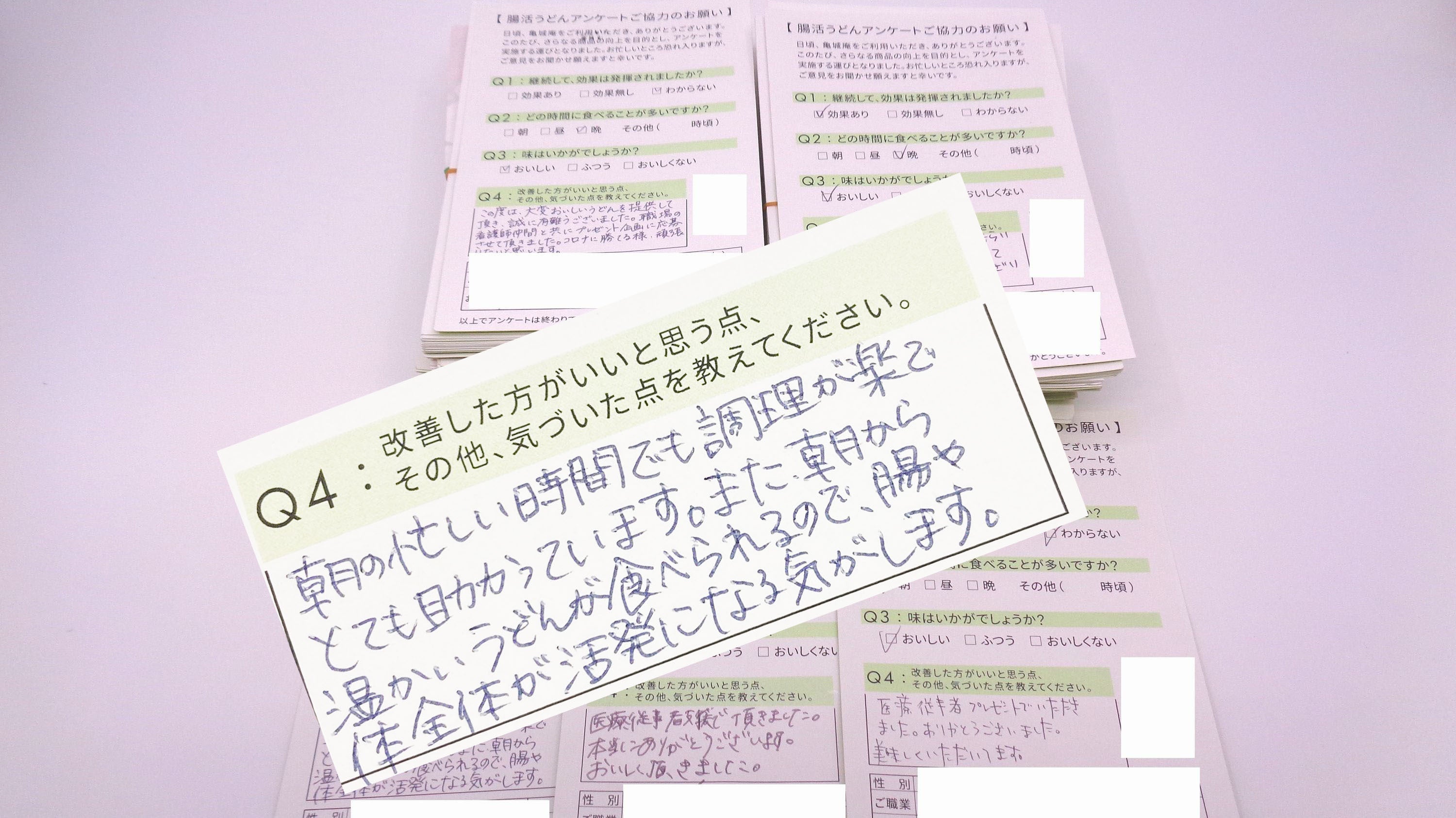 また、応募はがきからのコメントとして、『腸活うどん』を必要として頂いていることが分かりました。