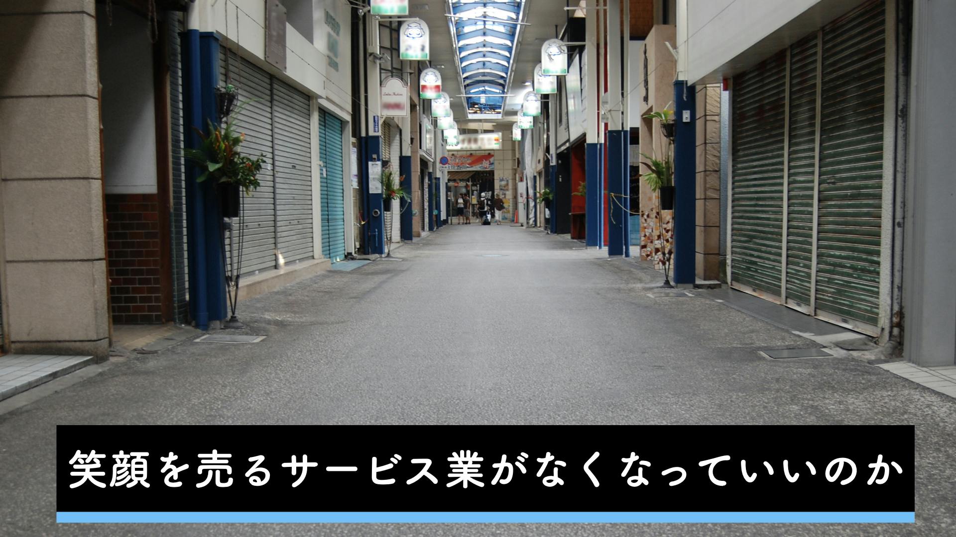 現時点では客足の回復が見られますが、将来的に起こると思われる日本の人口減や少子高齢化により、このまま何も変わらなければサービス業の存続が危ないと考えます。しかし、日本を笑顔にしているのはサービス業です。仕事後の食事や休日のショッピング、旅行など、笑顔になる場所ではいつも働いてくれる方がいます。その方々がより笑顔でサービスを提供できることで、日本がより笑顔で明るくなるのではないかと思っています。