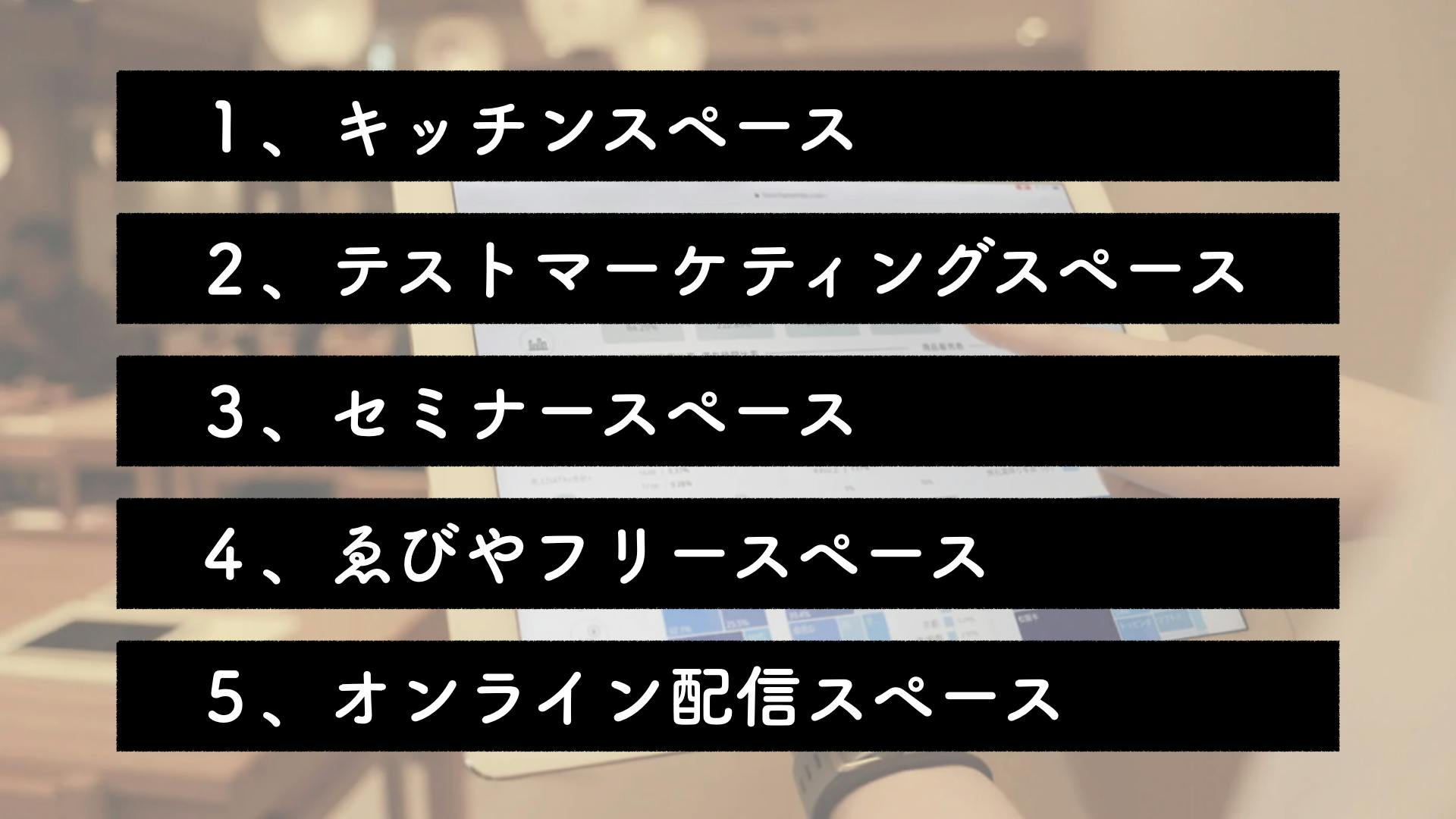 1階の「キッチンスペース」の隣には、「テストマーケティングスペース」を作ります。飲食店のDX体感だけなく、小売のDX体感もできるようにこのスペースも貸し出しします。セルフレジを導入予定で、少ない人員で効率的に業務を行うことを体感できます。