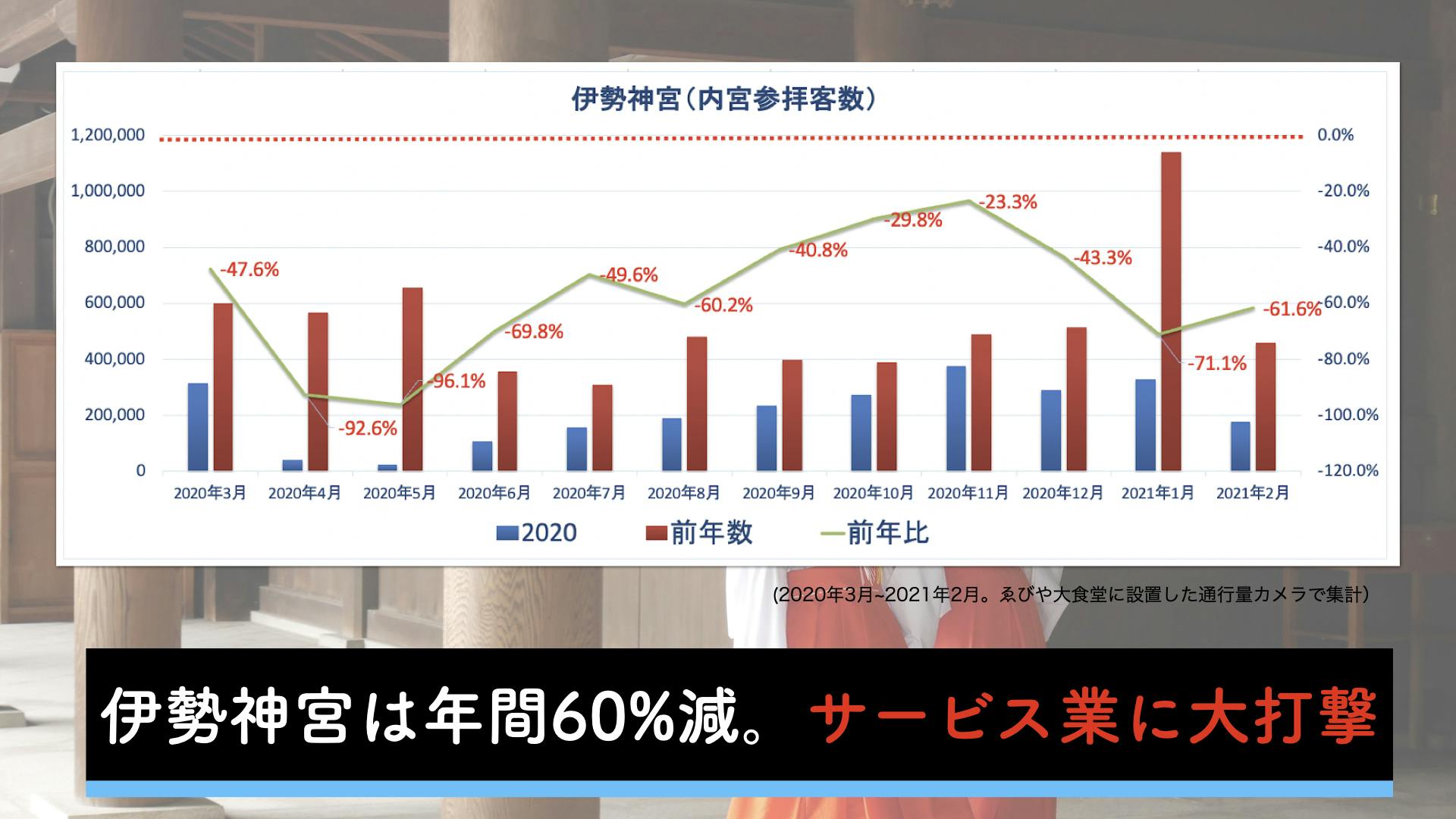 ゑびやのデータですが、通常ですと、年間800万人(伊勢神宮『内宮』約600万人、『外宮』約200万人)以上の観光客で賑わう伊勢神宮の参道が、新型コロナウイルスの影響で観光客が激減しました。とくにご高齢の方が減り、40代以上をターゲットにメニューや商品を展開している弊社は苦しい時期を過ごしました。
