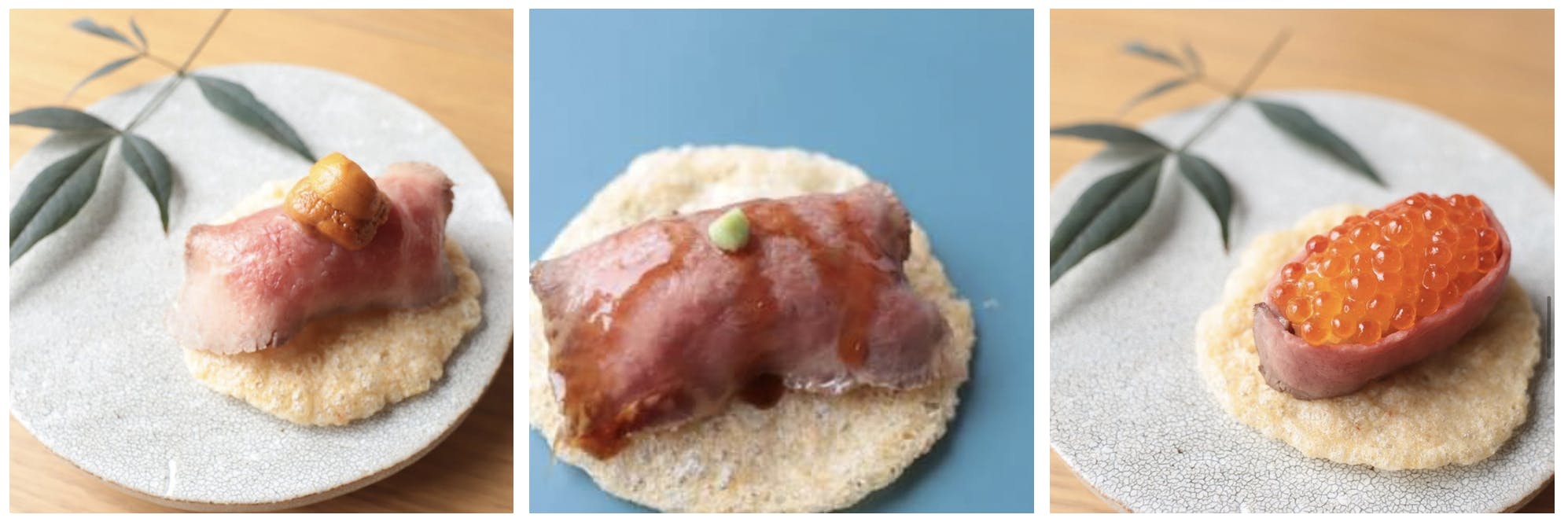 このスペースでは、ゑびやの大人気メニューの一つでもある肉寿司を販売します。口の中でとろける松坂牛ローストビーフ炙り寿司だけでなく、うにのっけ、いくらのっけなど、松坂牛の創作寿司を販売いたします。