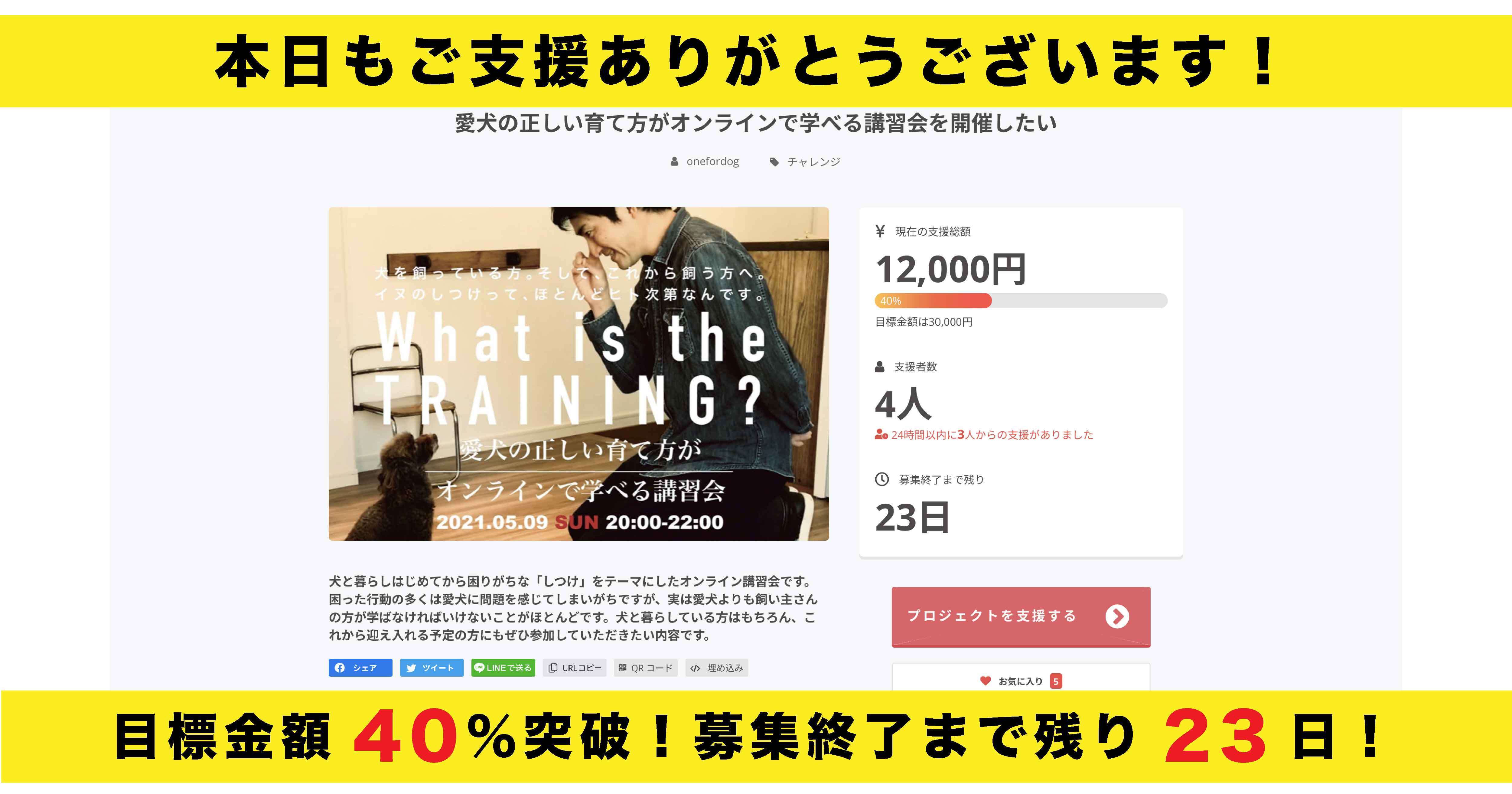 この度はOne for Dog のクラウドファンディング「愛犬の正しい育て方がオンラインで学べる講習会を開催したい」にご支援いただきありがとうございます!