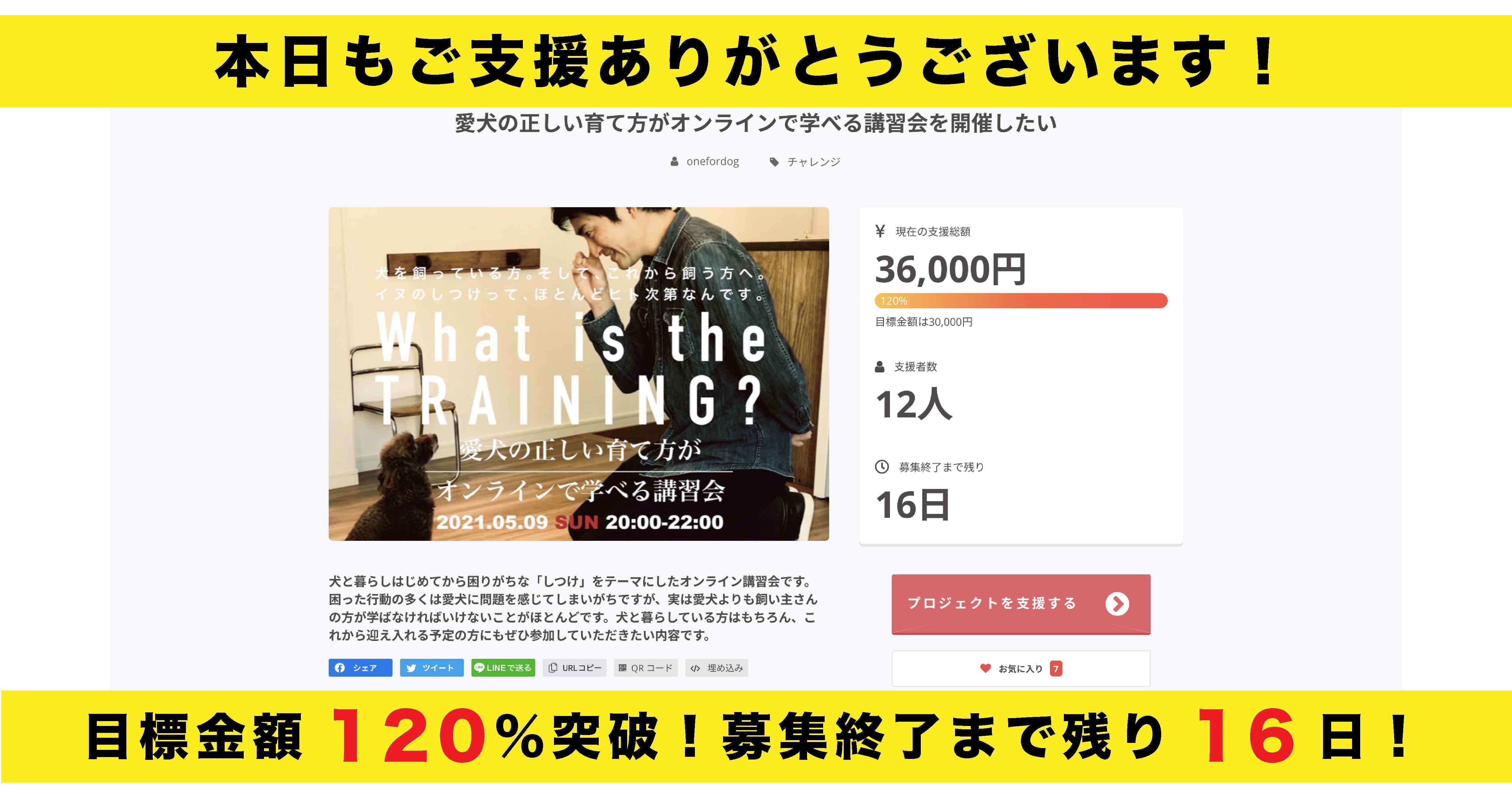 この度はOne for Dog のクラウドファンディング「愛犬の正しい育て方がオンラインで学べる講習会を開催したい」にご支援いただきありがとうございます。