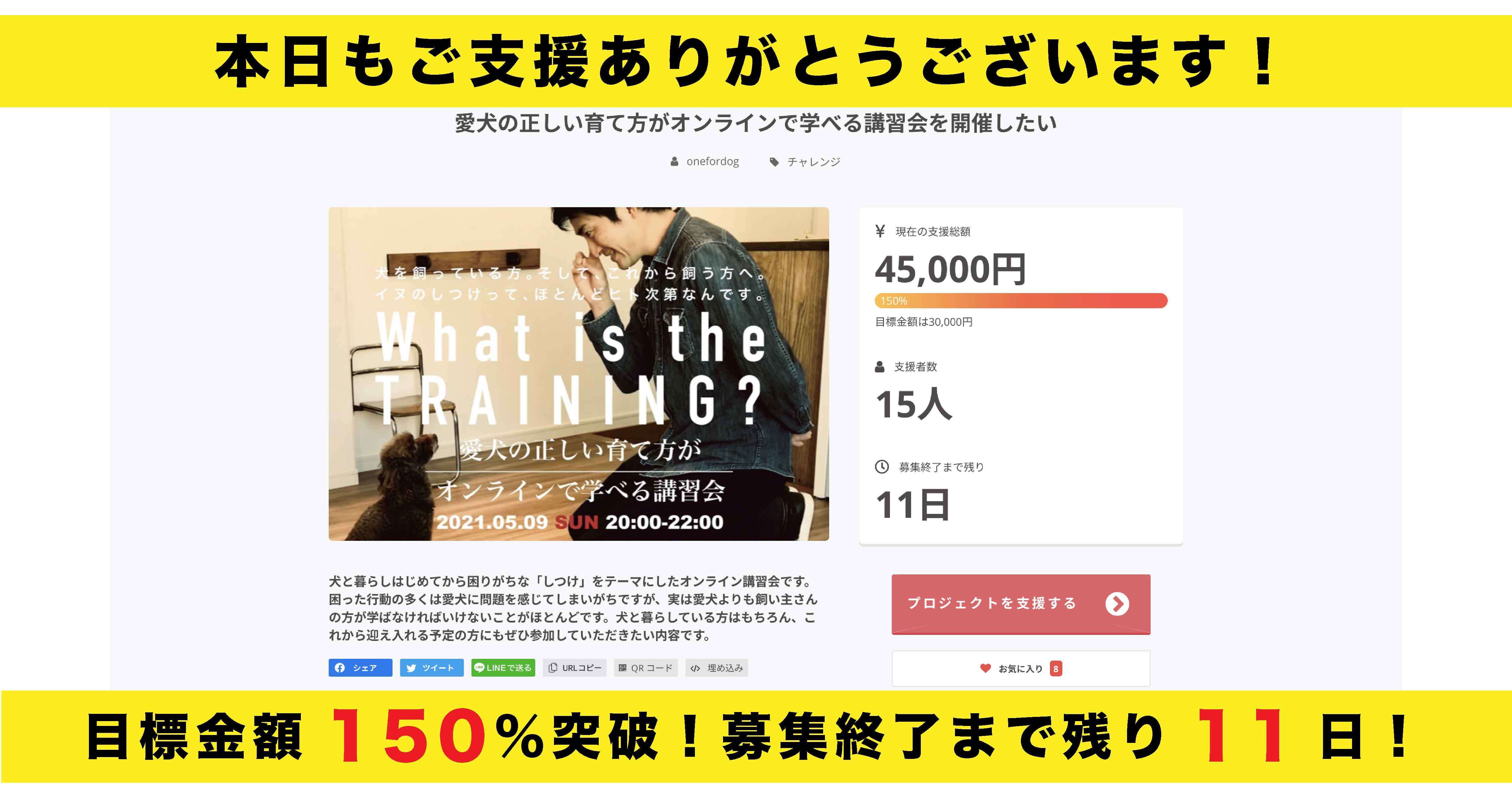 この度はOne for Dog のクラウドファンディング「愛犬の正しい育て方がオンラインで学べる講習会を開催したい」にご支援いただきありがとうございます。