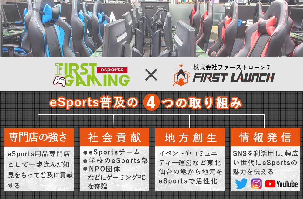 そこで、東北初・日本でも数少ない eSports用品専門店「First Gaming」(ファーストゲーミング)をオープンし、日本のeSportsシーンを本気で変えていきたいと考えています。