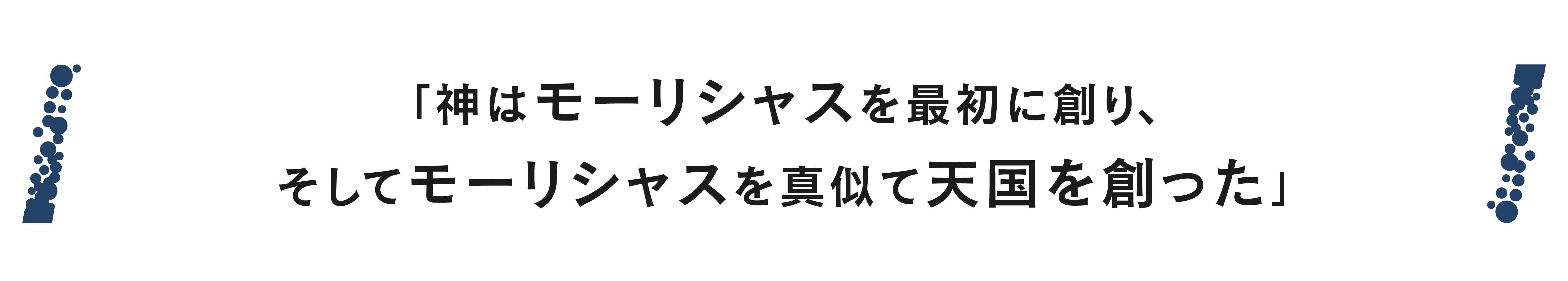 ところで、みなさんはモーリシャスという島国をご存知でしょうか? モーリシャスはアフリカの南東、マダガスカルの東に位置し、東京都とほぼ同じ面積に約130万人が暮らす小さな島国です。美しく透き通る海や白い砂浜はまさに地上の楽園。トム・ソーヤの冒険で知られる作家マーク・トウェインは「神はモーリシャスを最初に創り、そしてモーリシャスを真似て天国を創った」という言葉を残したほどです。