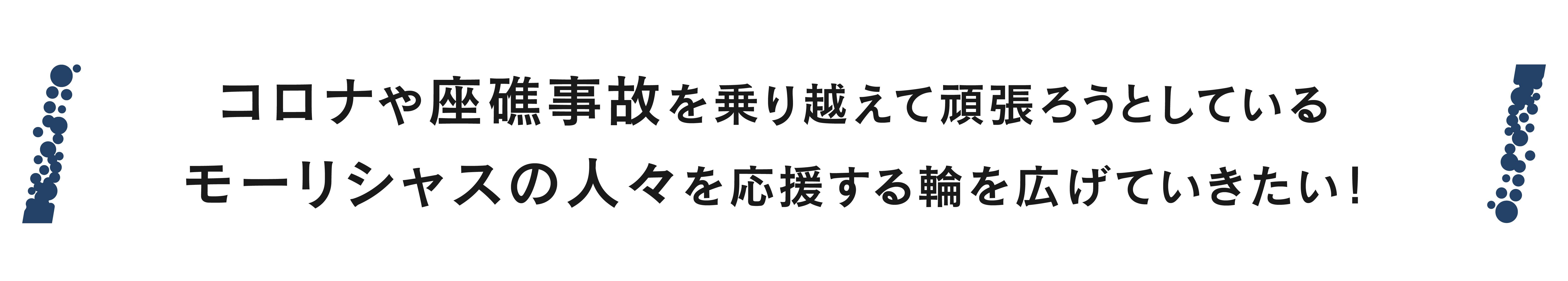 我々は、モーリシャスの現実と、モーリシャスの美しい自然と文化の素晴らしさを1人でも多くの皆様に知って頂き、モーリシャスの海を守る活動をしている方々や、コロナや座礁事故を乗り越えて頑張ろうとしている方々を応援する輪を広げていきたいと考えています。