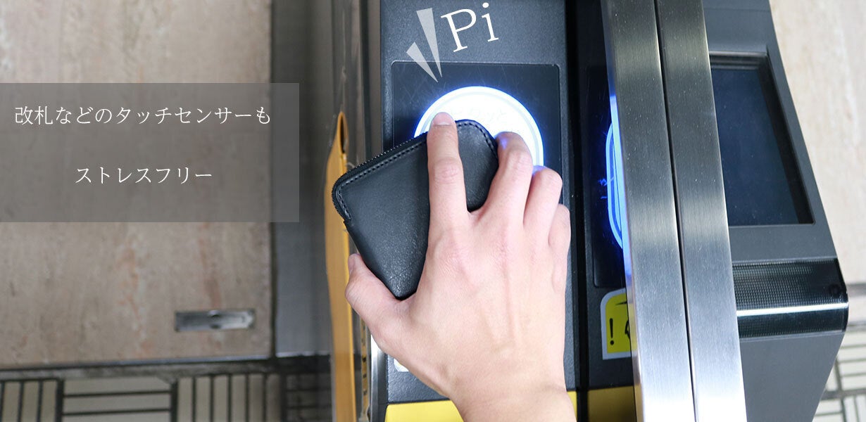 試作を重ね、財布をポケットに入れるときも引っ掛かりにくく、且つお札の収納に問題のないサイズ・内部レイアウトを追求しました!もちろんキャッシュレスにも対応していますので、さっと取り出して、タッチセンサーでの支払いもOK!