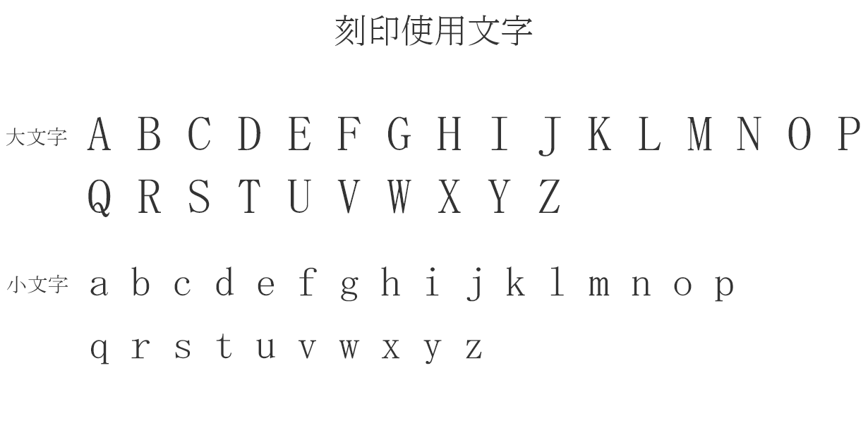■文字は、上記字体と数字、ピリオドのみ刻印が可能です。