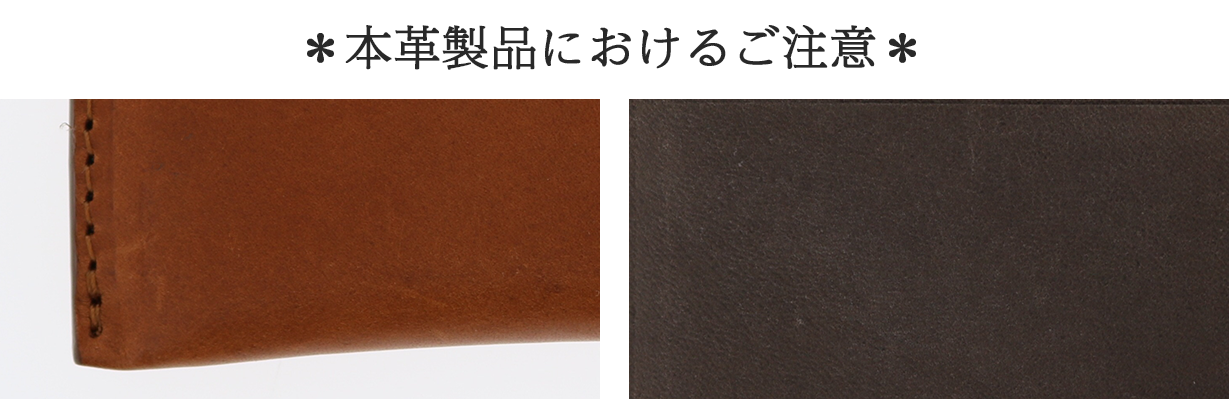 革本来が持っている、血筋・シワなどが傷に見える場合もございますので、ご了承をお願いいたします。また、ご使用の際の衣服などへの色移りには十分にご注意ください。