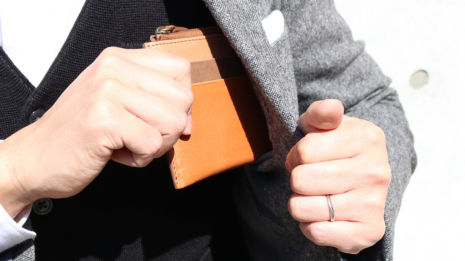ジャケットの胸ポケットでもすんなり入る”薄さ”で、出し入れもスムーズ