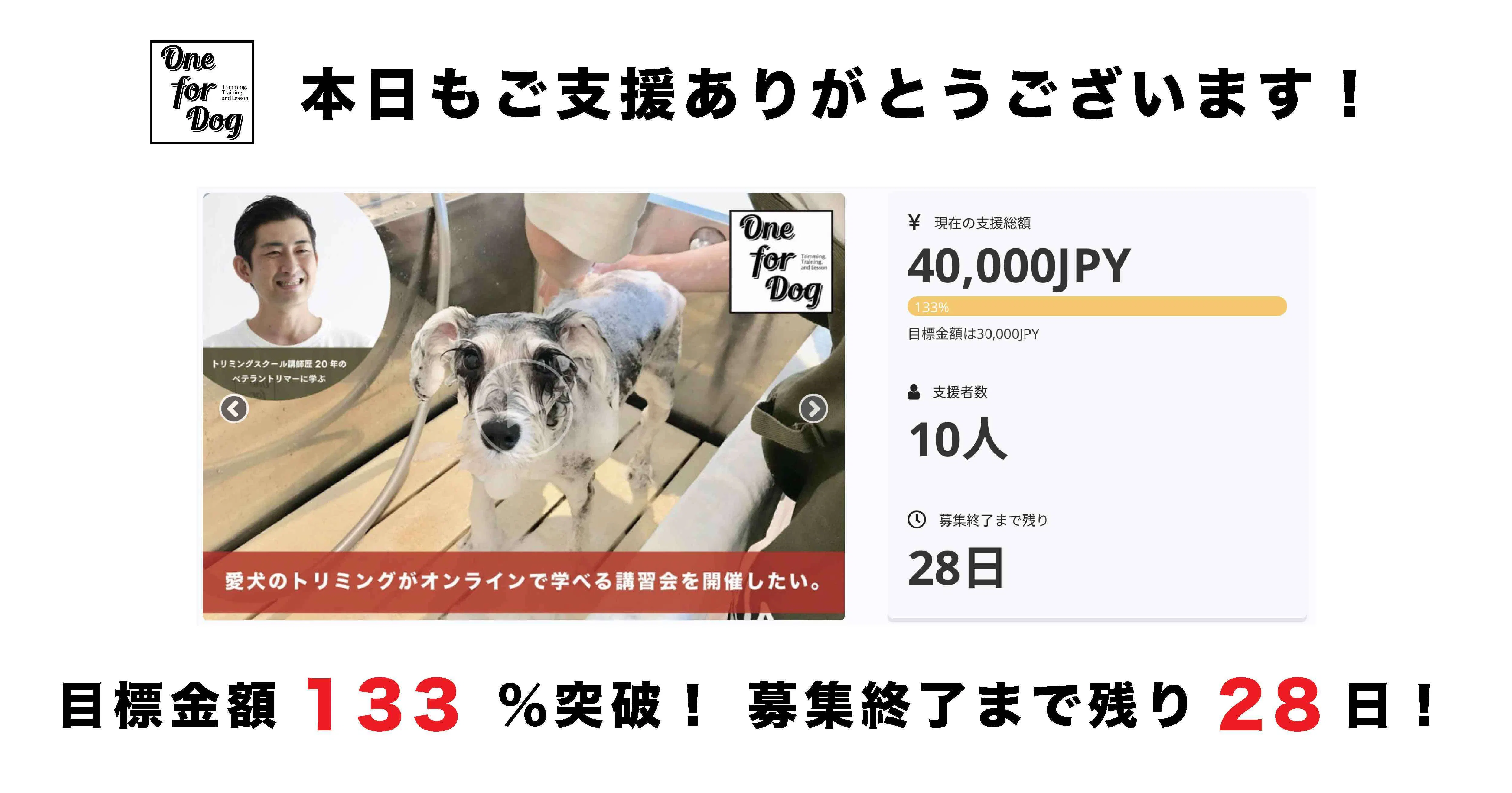 この度はOne for Dog のクラウドファンディング「"愛犬のトリミングがオンラインで学べる講習会"を開催したい。」にご支援いただきありがとうございます!