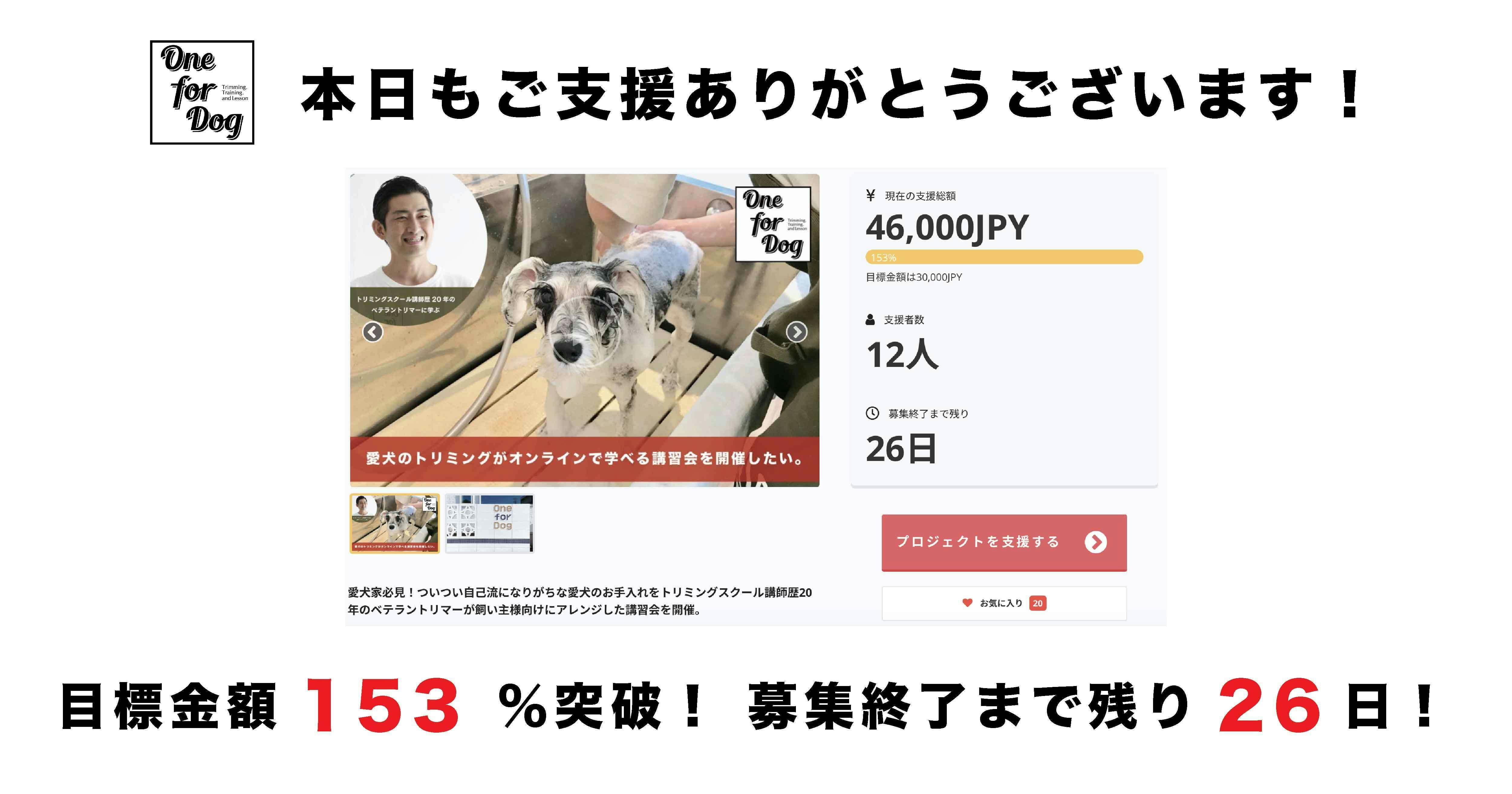 この度はOne for Dog のクラウドファンディング「"愛犬のトリミングがオンラインで学べる講習会"を開催したい。」にご支援いただきありがとうございます!