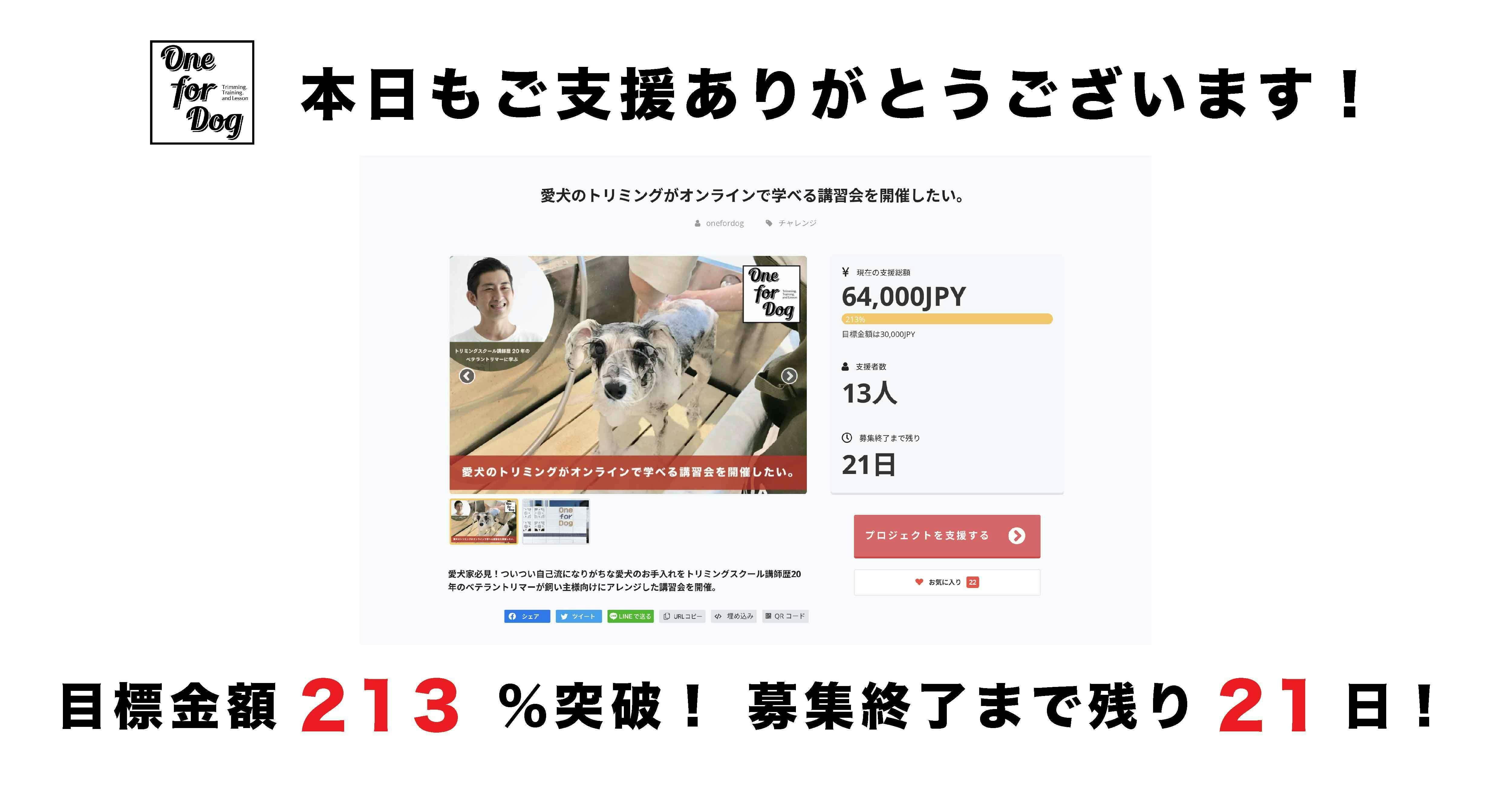 この度はOne for Dog のクラウドファンディング「"愛犬のトリミングがオンラインで学べる講習会"を開催したい。」にご支援いただきありがとうございます!