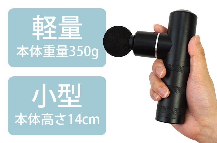 重さ350g、高さ14cmの超軽量&小型筋膜リリースガンが登場!持ち運びに便利なコンパクトサイズです。