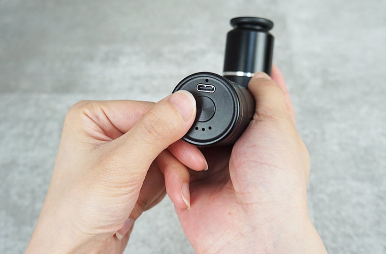 コンパクトなボディーの中に大容量1500Ahのバッテリーを搭載しています。すぐに電池が切れてしまう心配もございません。充電には同梱のUSB Type-Cケーブルを使用します。
