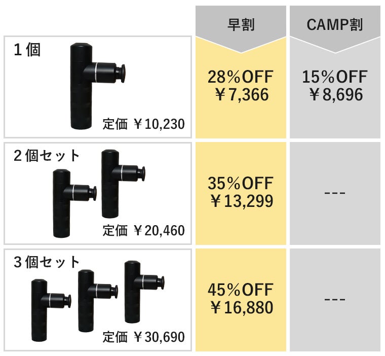 • ご支援者のみなさまページをご覧のみなさま弊社の第3弾プロジェクトが開始いたしました。 早速ご支援いただき、誠にありがとうございます!高さ14cm、重さ350gの超軽量&小型筋膜リリースガン!持ち運びに便利なコンパクトサイズ。筋肉の10mm奥へ刺激がしっかり届くハイパワーモーター搭載。4つのアタッチメントで体のあらゆる部分に最適なアプローチが可能です。どこでも気軽に本格マッサージを体感できます♪残り58日、引き続きよろしくお願いいたします。 もっと見る