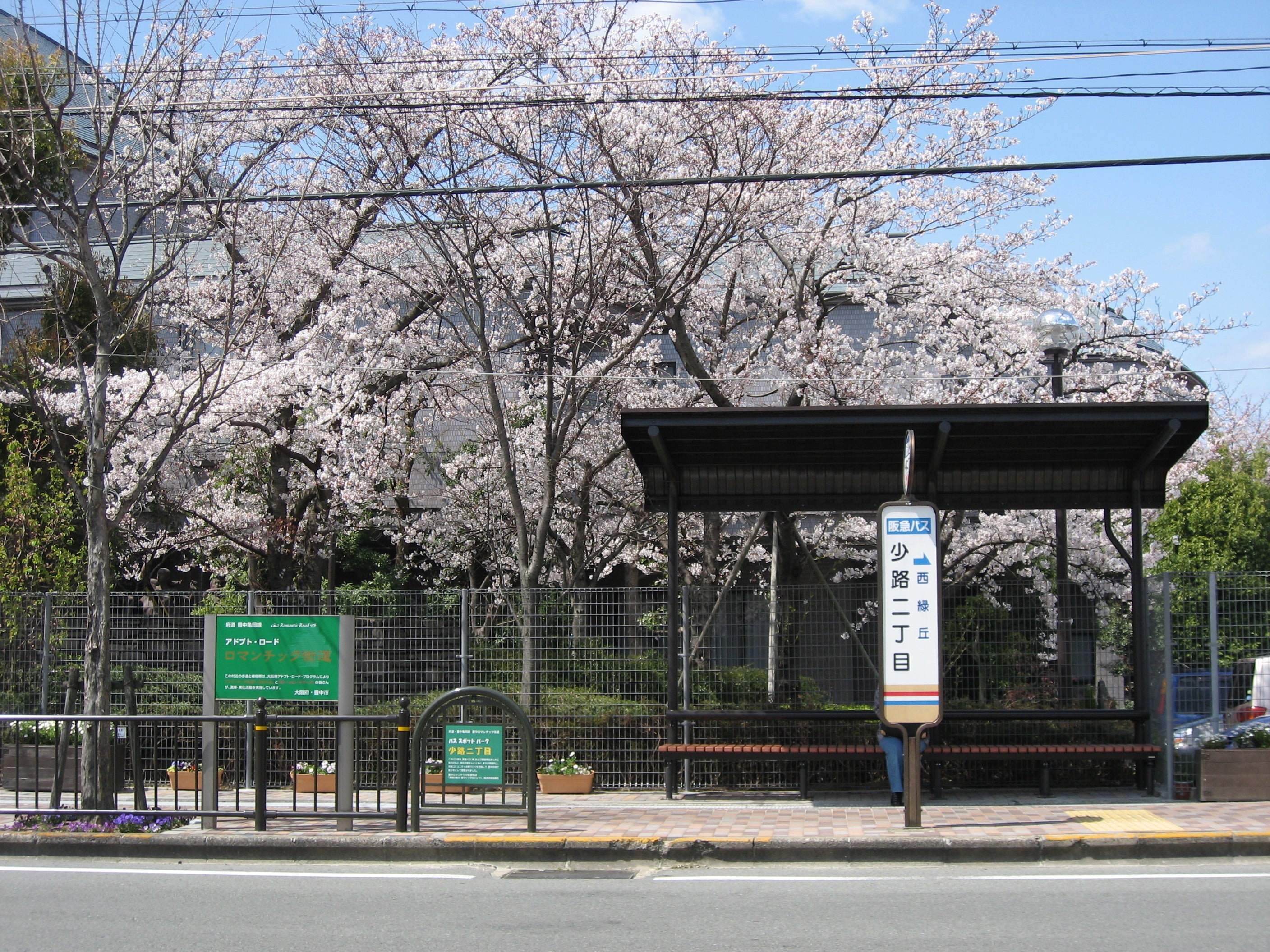 ロマチカはバスを利用する方が多いので、先人たちが長年取り組んで頂いた努力が実り、停留所にはベンチや屋根がついています。
