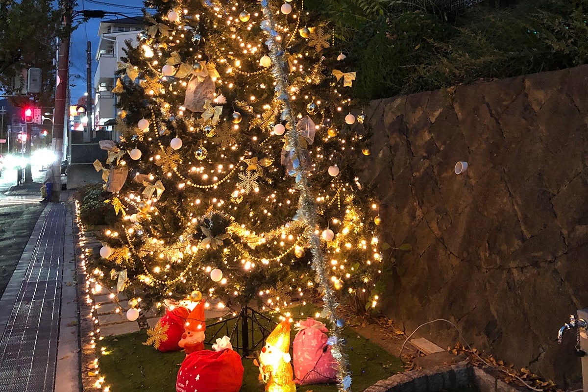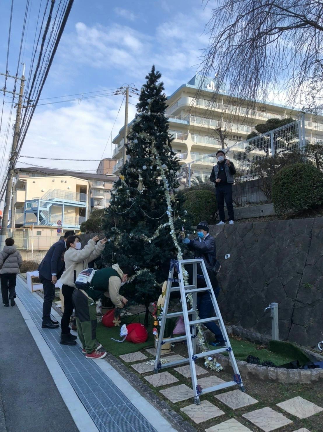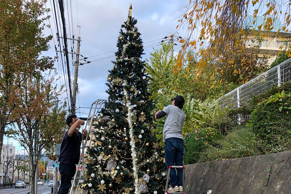 まずは現在のメンバーがシンボル花壇へ「4mのクリスマスツリー」を飾りつけ、街道の商業、マンション、テナントビルの方へ呼びかけていく活動を行っています。