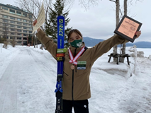 その後大学で再起を図り、青山学院大学での勉強とスキーの両立をしてきましたが、トップ選手と比べてスキーに集中する時間が少なくなってしまいました。しかし、その中でも環境の変化に順応し少しずつ成績が出始め、2020年北海道釧路市 国設阿寒湖畔スキー場で行われた全日本スキー選手権大会では大回転 3 位の成績を収めることができました。