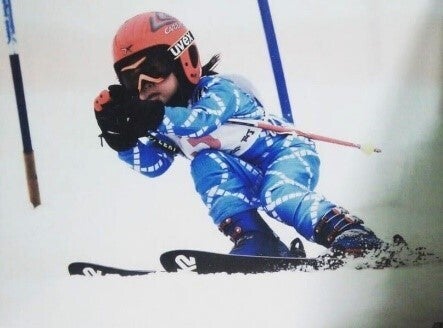 スキー初乗りは2歳、アルペンスキーは5歳から現在に至る。