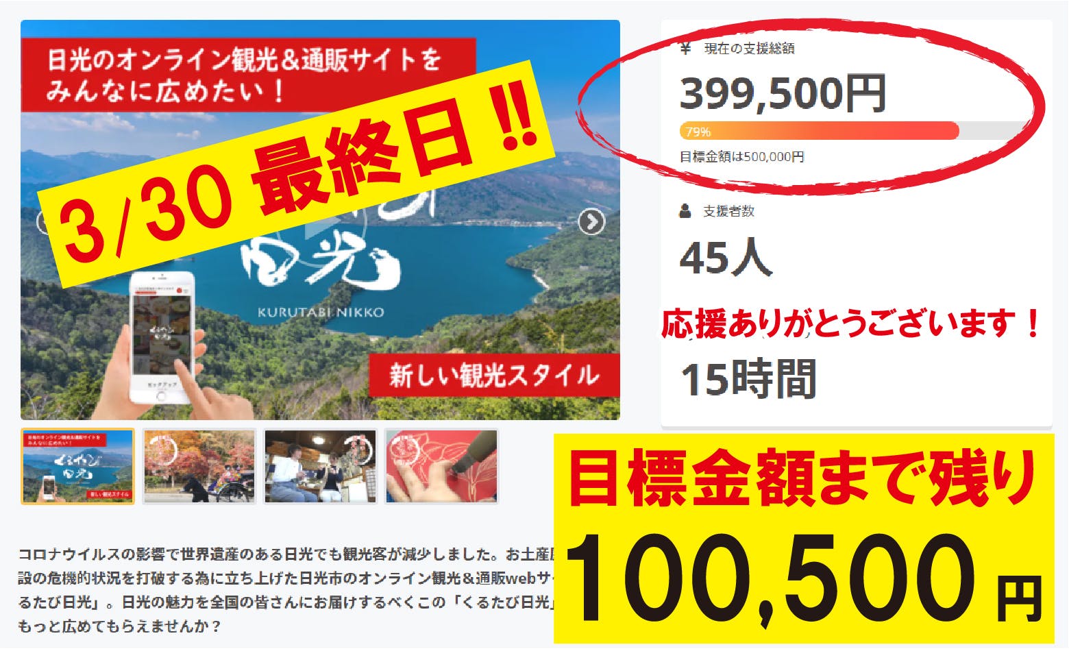 集まった資金は「くるたび日光」の宣伝活動や、今回のリターン品に使用いたします。