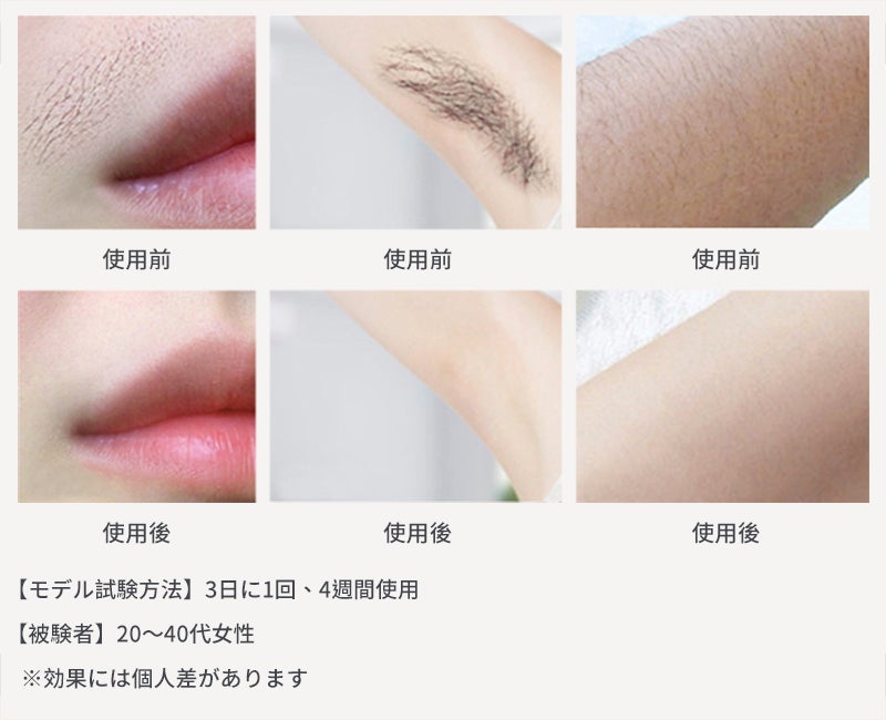 ●照射から24時間以内、湯船での入浴、サウナ又脱色クリーム、香水、ピーリング剤の使用をお避けください。