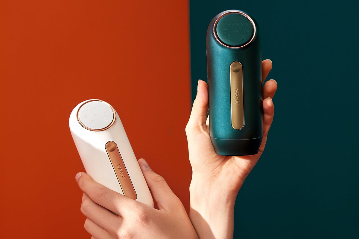 JOVS miniのデザインは、人間工学の原則に則った機能性と美しさの両方を備えたジオメトリックなスタイルを採用。カラーは落ち着いたグリーンとレトロホワイトの2種類。ともに品のあるマット仕上げで、ダイヤルや光を照射するヘッド部分、ボタンなどに豪華なシャンパンゴールドを使用しています。自分へのご褒美として、大切な人への贈り物としても、思いやりのあるプレゼントです。