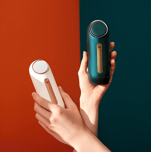 JOVS miniのデザインは、人間工学の原則に則った機能性と美しさの両方を備えたジオメトリックなスタイルを採用。カラーは落ち着いたグリーンとレトロホワイトの2種類。ともに品のあるマット仕上げで、ダイヤルや光を照射するヘッド部分、ボタンなどに豪華なシャンパンゴールドを使用しています。自分へのご褒美として、大切な人への贈り物としても、思いやりのあるプレゼントです。