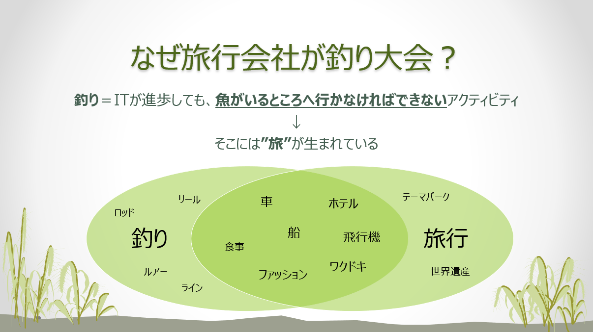 私たちトヨタツーリストは旅行会社です。旅行業界と釣り業界は一見関係ないようにも感じますが、実は密接に関係しています。なぜならば、釣りはどれだけITが発達しても、現地に行かなければ出来ないアクティビティです。そこには”移動”や”宿泊”などの『旅』が発生しています。私たちは旅行というジャンルから釣り業界の発展に貢献すべく、新たなチャレンジの第一歩として、当イベントを開催したいと考えています。