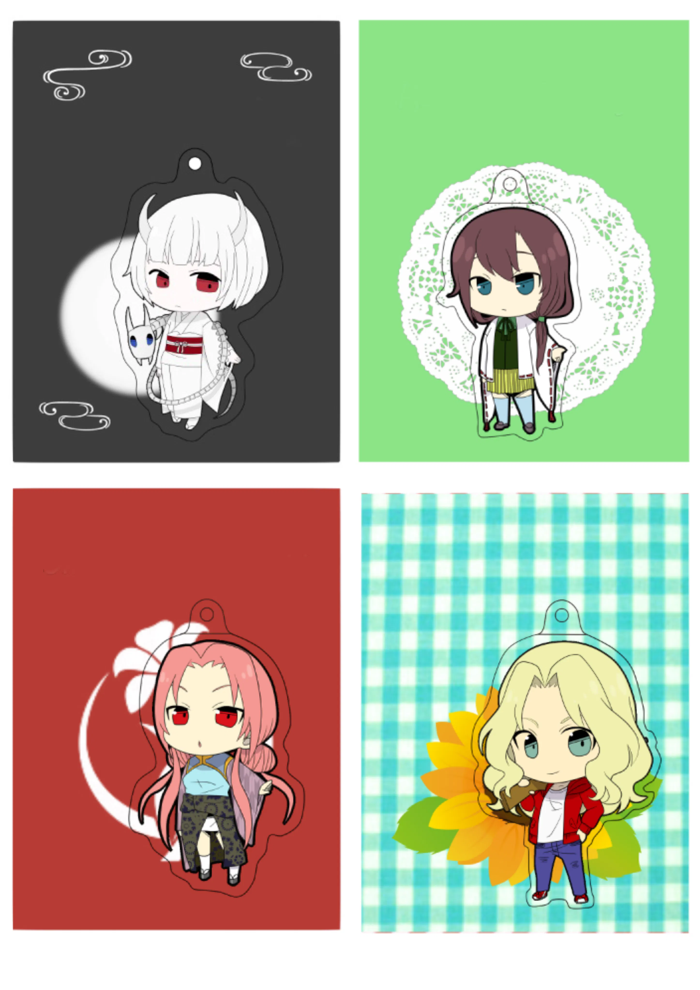 アクリルキーホルダーのリターンは、そのキャラのイメージによって台紙を変えることもできますので、遠慮なくお知らせください。