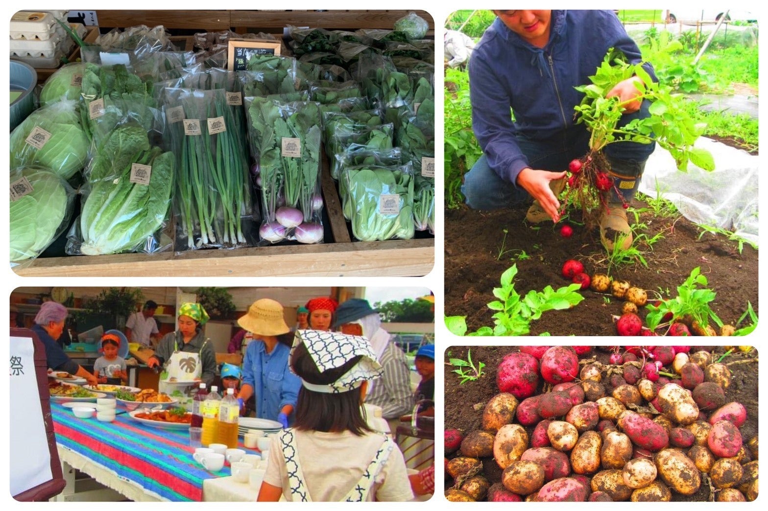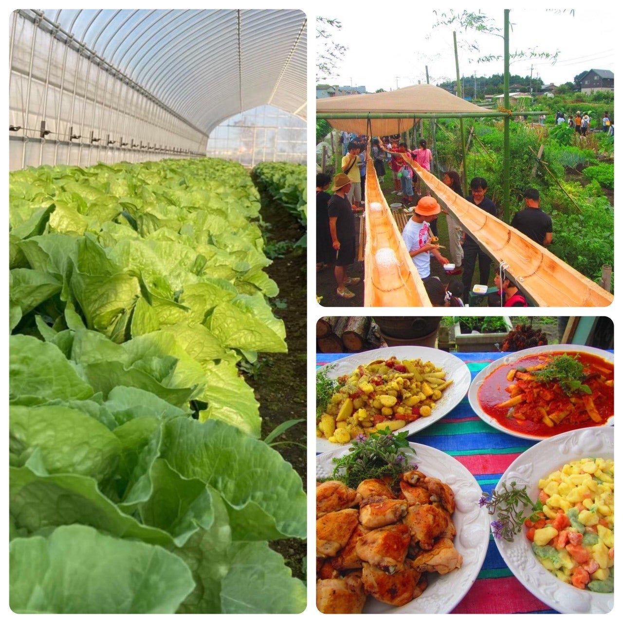 自分で収穫した野菜を購入、調理してその場で食べられる、農園でのんびり過ごせる
