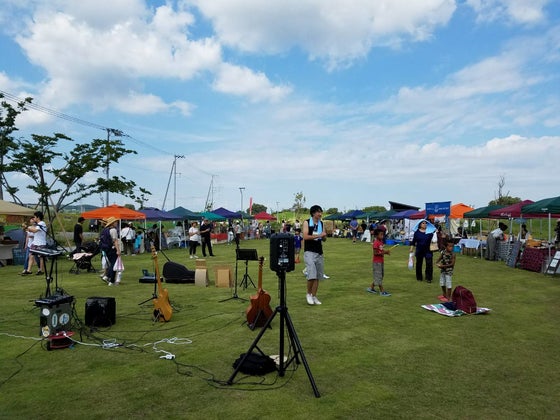 演奏中に太陽がいちばん元気になりまして、直射日光に焼かれて機材が壊れるかとヒヤヒヤしたりもしましたが、青と緑の中で気持ちよく演奏することができました!