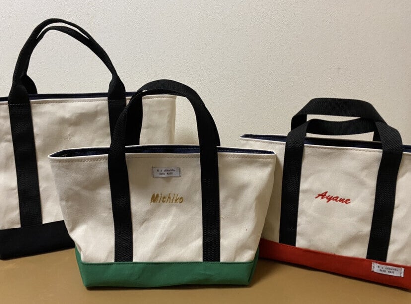 私の本職が縫製業なので、オリジナルHand madeの帆布のトートバッグ、エコバッグなど。